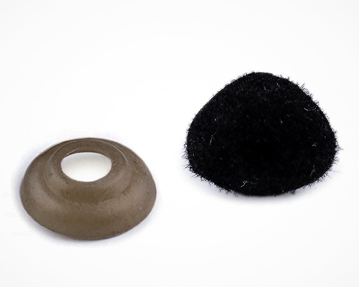 Bezpečnostní nos z plastu v semišové úpravě v jednobarevné černé barvě v rozměru 12x15mm. Sametový čumáček je díky jemnému povrchu velice příjemný na dotek. Čumáčky jsou vhodné pro výrobu hraček a dekorací. Díky bezpečnostní zarážce proti vypadnutí jsou čumáčky odolnější vůči vytrhnutí nebo sloupnutí z výrobku. Cena je za 1ks včetně zarážky.