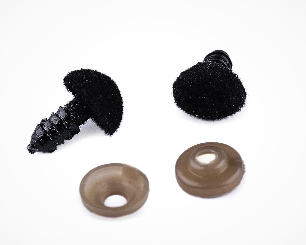 Bezpečnostní nos z plastu v semišové úpravě v jednobarevné černé barvě v rozměru 12x15mm. Sametový čumáček je díky jemné...