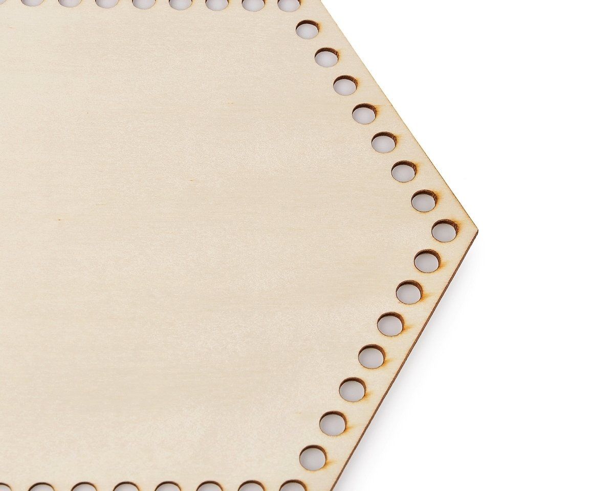 Dřevěný šestihran s velkými otvory je vhodný na výrobu bytových dekorací. Je přesně vyřezaný laserem. Můžete jej použít jako dno k výrobkům z pedigu na košíky a tácky. Je vhodný i pro háčkování košíků ze špagetových přízí a také na výrobu drhaných obrázků a závěsů či zvonkoher. Překližka je nelakovaná, můžete domalovat dle vlastní fantazie například akrylovými barvami, popisovači, glitrovými lepidly, využít ubrouskovou techniku apod. Kruh má celkem 48 otvorů. Rozměr desky Ø 20 cm, tloušťka 2,5 mm, průměr dírky je 6,7 mm.