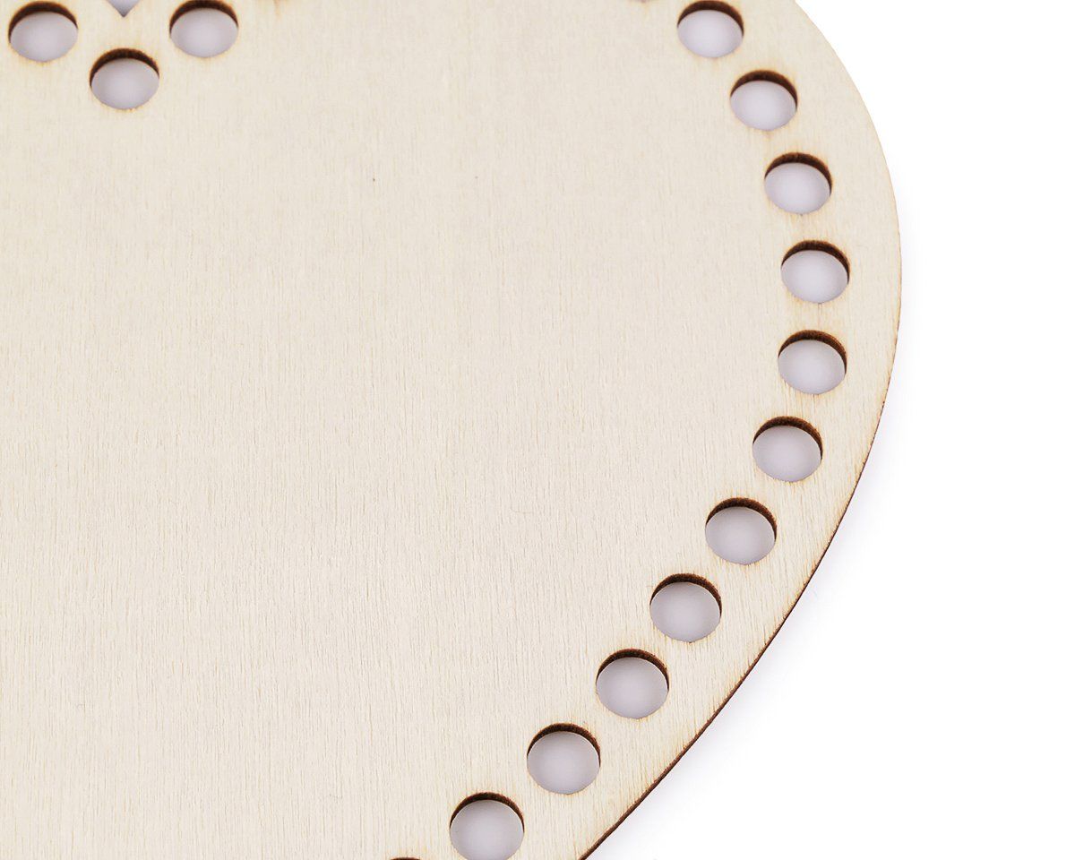 Dřevěné srdce s velkými otvory je vhodný na výrobu bytových dekorací. Je přesně vyřezaný laserem. Můžete jej použít jako dno k výrobkům z pedigu na košíky a tácky. Je vhodný i pro háčkování košíků ze špagetových přízí a také na výrobu drhaných obrázků a závěsů či zvonkoher. Překližka je nelakovaná, můžete domalovat dle vlastní fantazie například akrylovými barvami, popisovači, glitrovými lepidly, využít ubrouskovou techniku apod. Kruh má celkem 42 otvorů. Rozměr desky 15 x 17 cm, tloušťka 2,7 mm, průměr dírky je 7,2 mm.