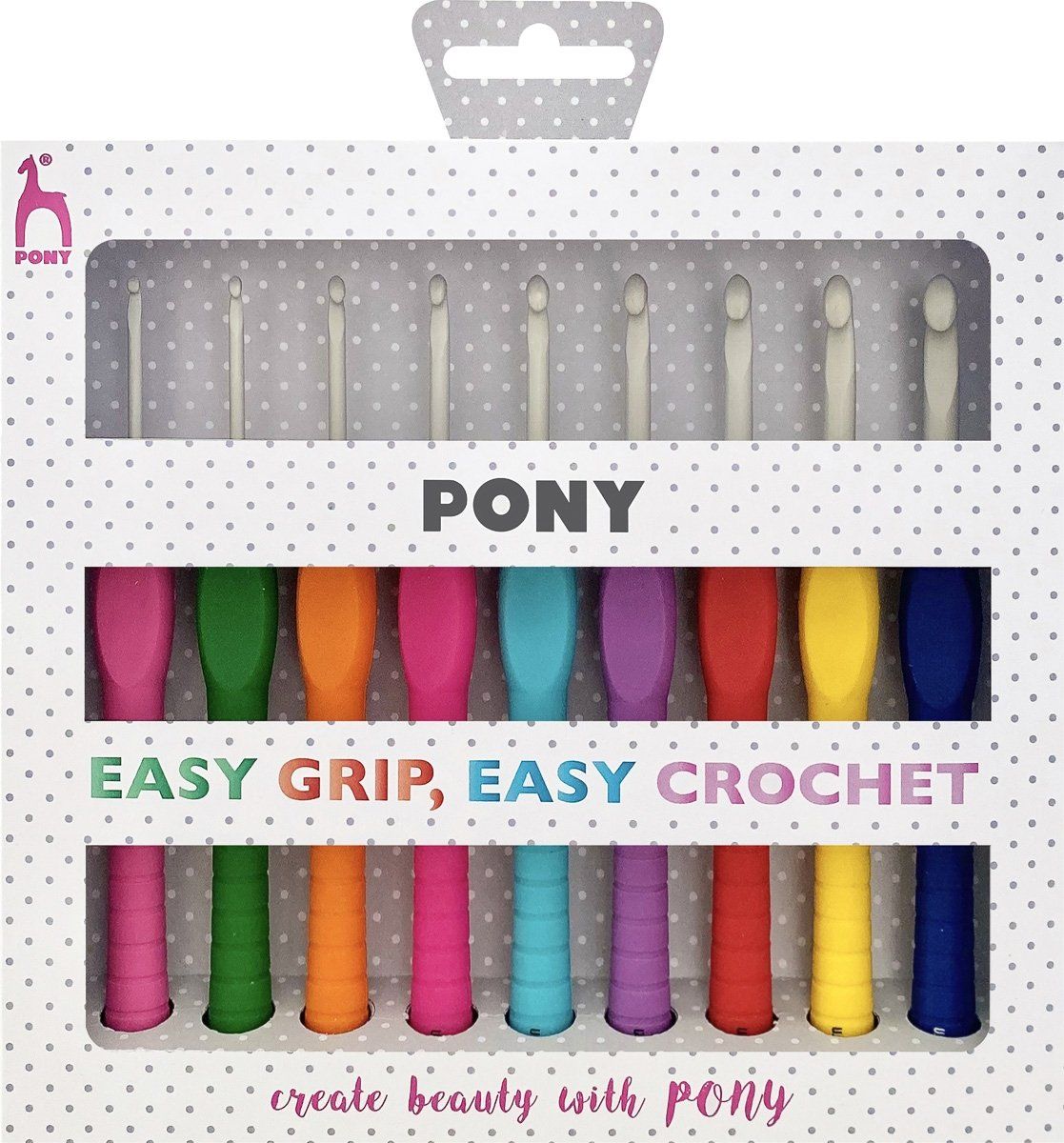 Háčky na háčkování EASY GRIP-PONY kovové / hliníkové s gumovou rukojetí 656835, sada 9 velikostí