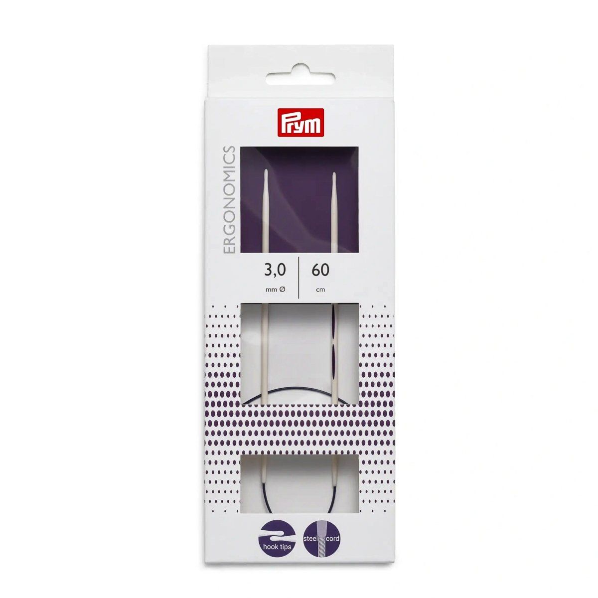 Pletací jehlice PRYM ERGO 215602, ergonomické plastové, kruhové, 1 kus, délka 60cm, velikost 3mm