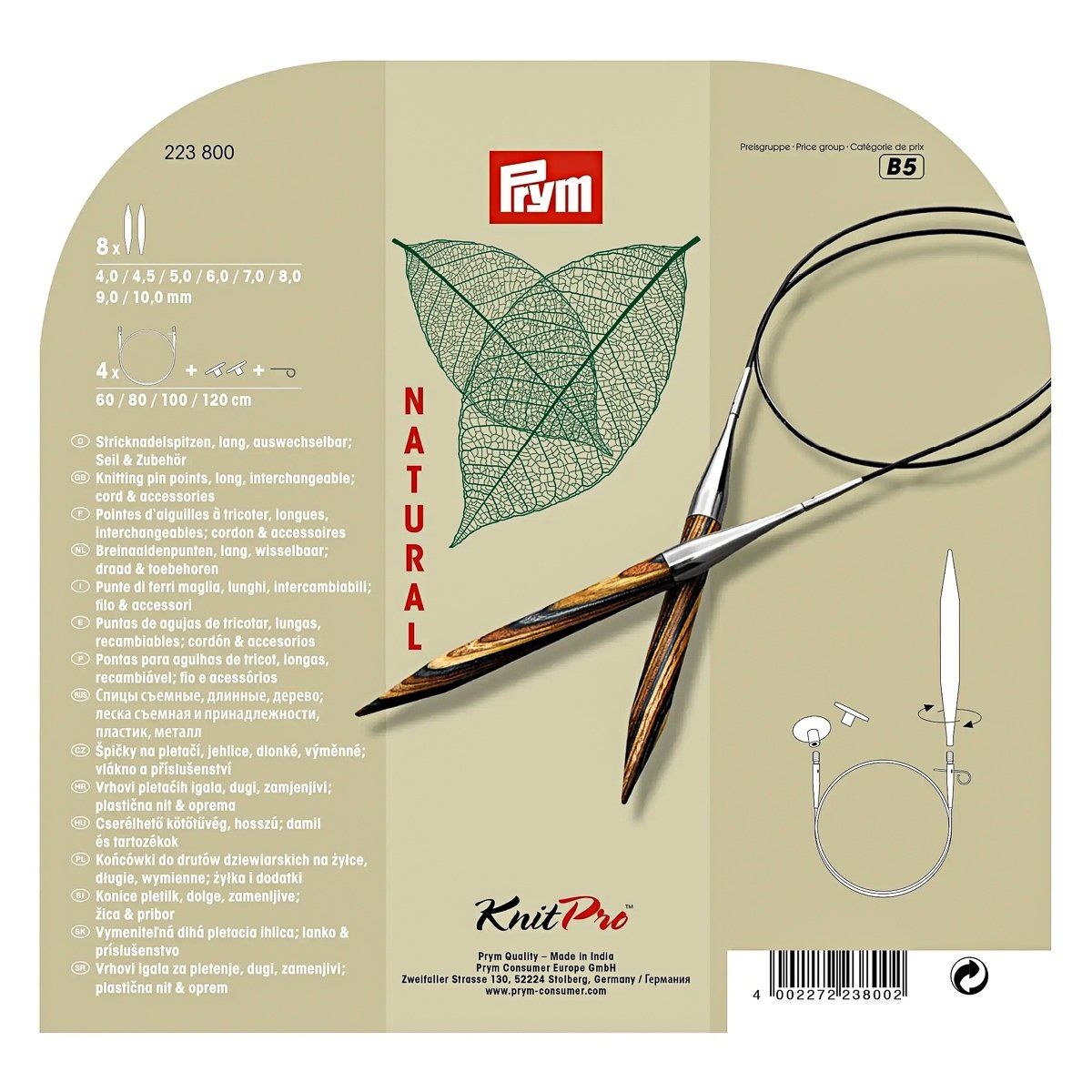 Pletací jehlice PRYM NATURAL 223800, dřevěné, kruhové, sada 8 kusů, délka 60, 80, 100, 120cm, velikost 4, 4,5, 5, 6, 7, 8, 9, 10mm