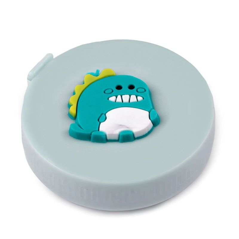 Oboustranný krejčovský svinovací metr ozdobený 3D obrázkem dinosaura v šedé barvě v šíři 7mm a délce 150cm pro běžné měření. Metr je vyroben z plastu, je oboustranný a z obou stran stejně barevný. Z jedné strany jsou jednotky v centimetrech - 150 cm, z druhé strany v palcích/inčích (inches) 60 inch....