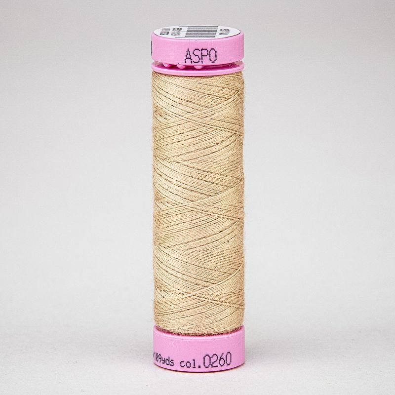 Univerzální hobby nit značky Amann z řady ASPO 120 v béžové zlatavé barvě. Polyesterové nitě z řady ASPO o síle 120 jsou univerzální šicí nitě pro domácnost, vyráběné v ČR. Jsou vhodné pro ruční i strojové šití všech druhů textilních materiálů z přírodních, směsových a plně syntetických vláken. Na ú...