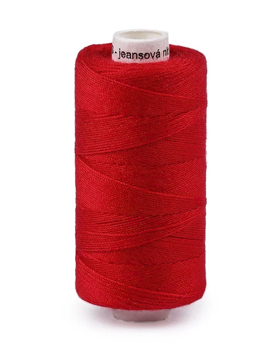 Univerzální hobby pevná nit na šití riflí / jeans v červené barvě. Polyesterové nitě jsou vhodné pro ruční i strojové ši...