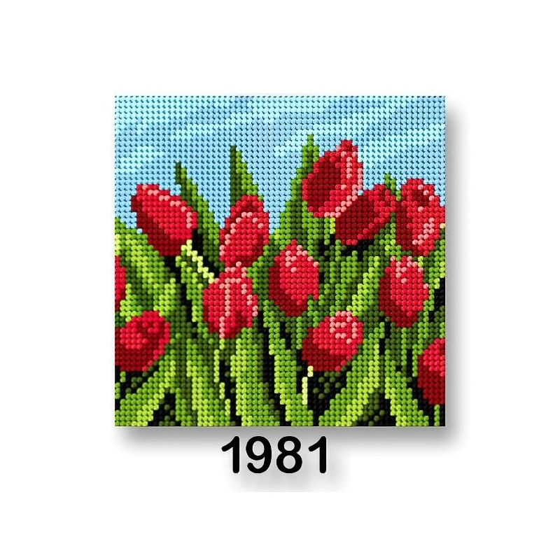 Vyšívací předloha, obrázek na vyšívání 70244/1981, květiny 6, červené tulipány, 15x15cm