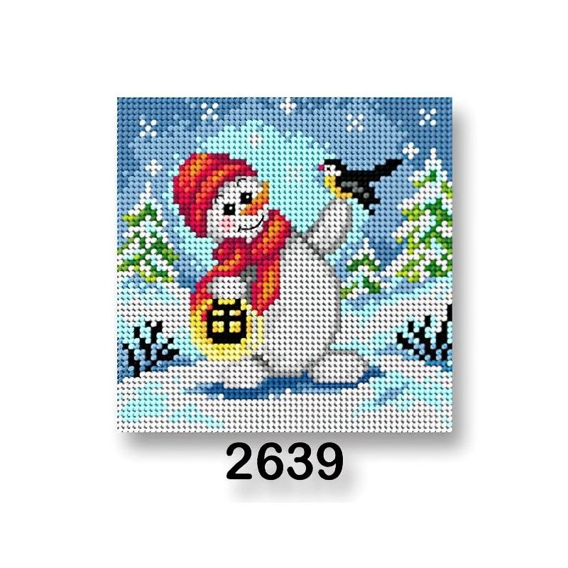 Vyšívací předloha s motivem sněhuláka s ptáčkem a lucernou v modrých barvách. Předloha na vyšívání ze 100% bavlny je vhodná zejména na křížkový steh, nejlépe při použití přízí mouline (mulinka), které na výšivce nejlépe vyniknou. Obrázek na vyšívání má rozměr 15 x 15 cm....