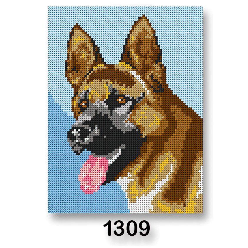 Vyšívací předloha, obrázek na vyšívání 70246/1309 německý ovčák na modré, 18x24cm