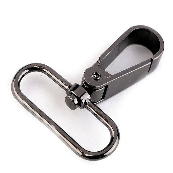 Kovová otočná karabina je vhodná na upevnění popruhů ke sportovním taškám či kabelkám. Můžete ji použít také na výrobu vodítek pro větší psy. Karabina je z nemagnetického kovu, magnetický je pouze šroubek, proto se dá prát v pračce.