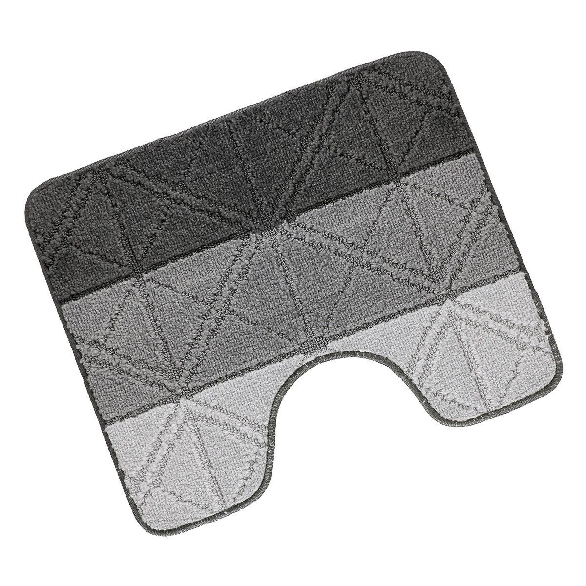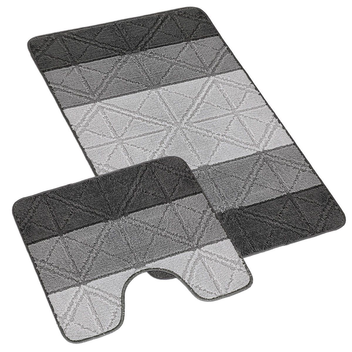 Koupelnové předložky se vzorem trojúhelníků v šedých barvách z kolekce Bany jsou vyrobeny ze 100% polypropylenu. Latexový nátěr na rubu předložky vytváří protiskluzový povrch. Velká souprava se skládá z předložky do koupelny 60 x 100 cm a předložky před WC 60 x 50 cm (lze objednat samostatně).