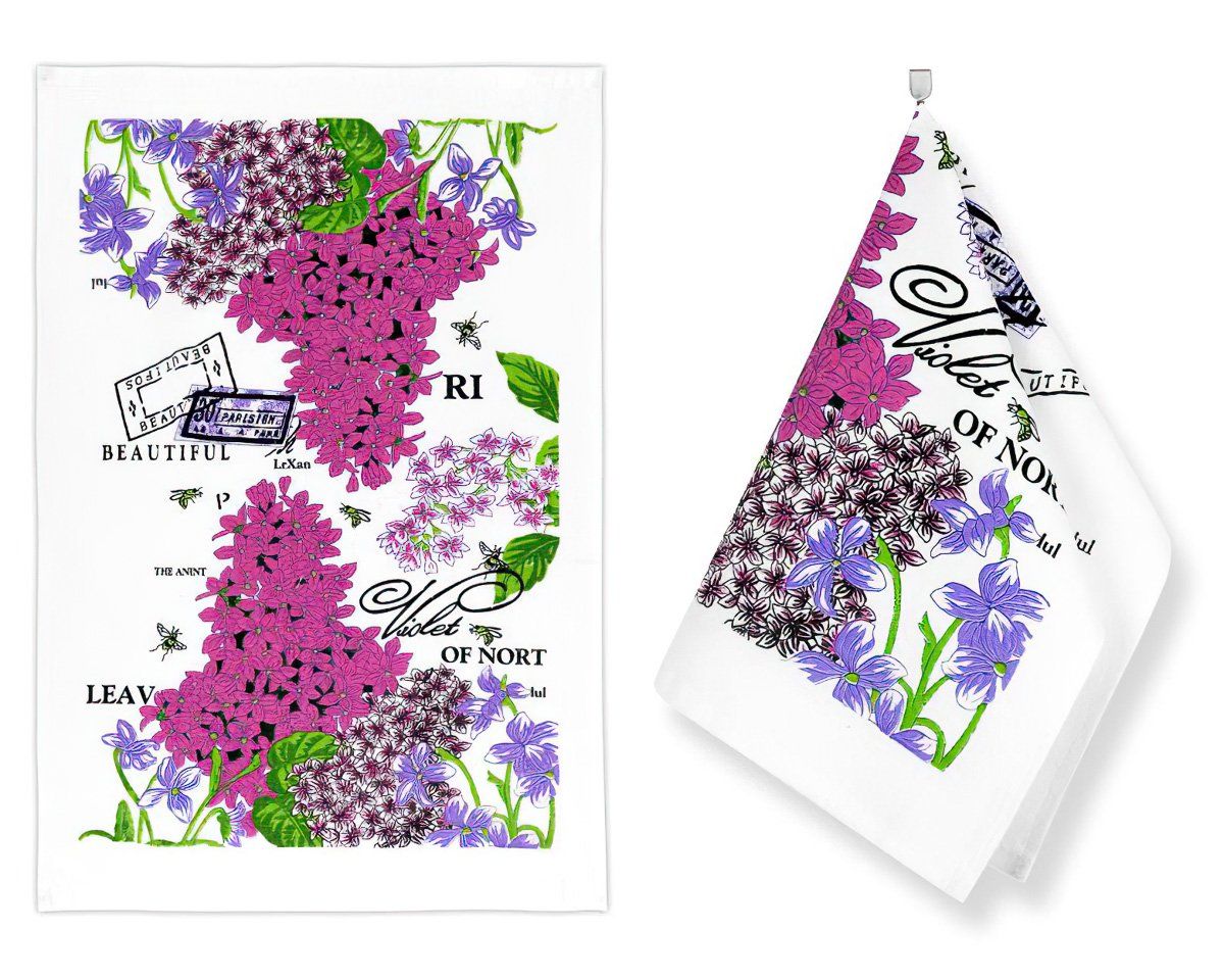 Froté kuchyňská utěrka ze 100% bavlny (gramáž 350g/m2) v rozměru 40x60cm se vzorem fialek a šeříku na bílém podkladu. Ut...