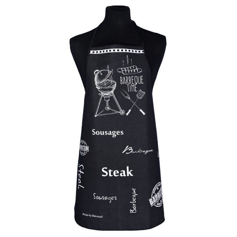 Kuchyňská zástěra je vyrobena ze 100% bavlny v rozměru 63x80 cm s potřebami na grilování a nápisu barbeque time v černém provedení.