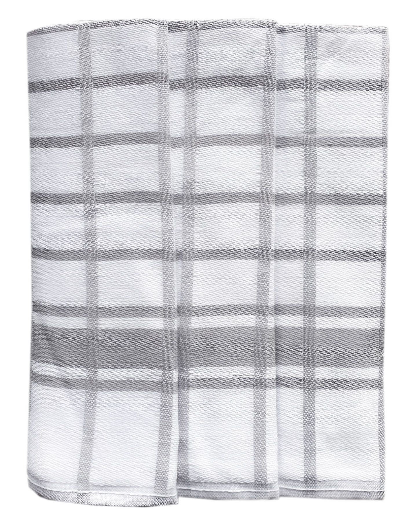 Souprava tří kusů kuchyňských utěrek z exkluzivní egyptské bavlny v rozměru 50x70cm se vzorem kára v šedo-bílém provedení.