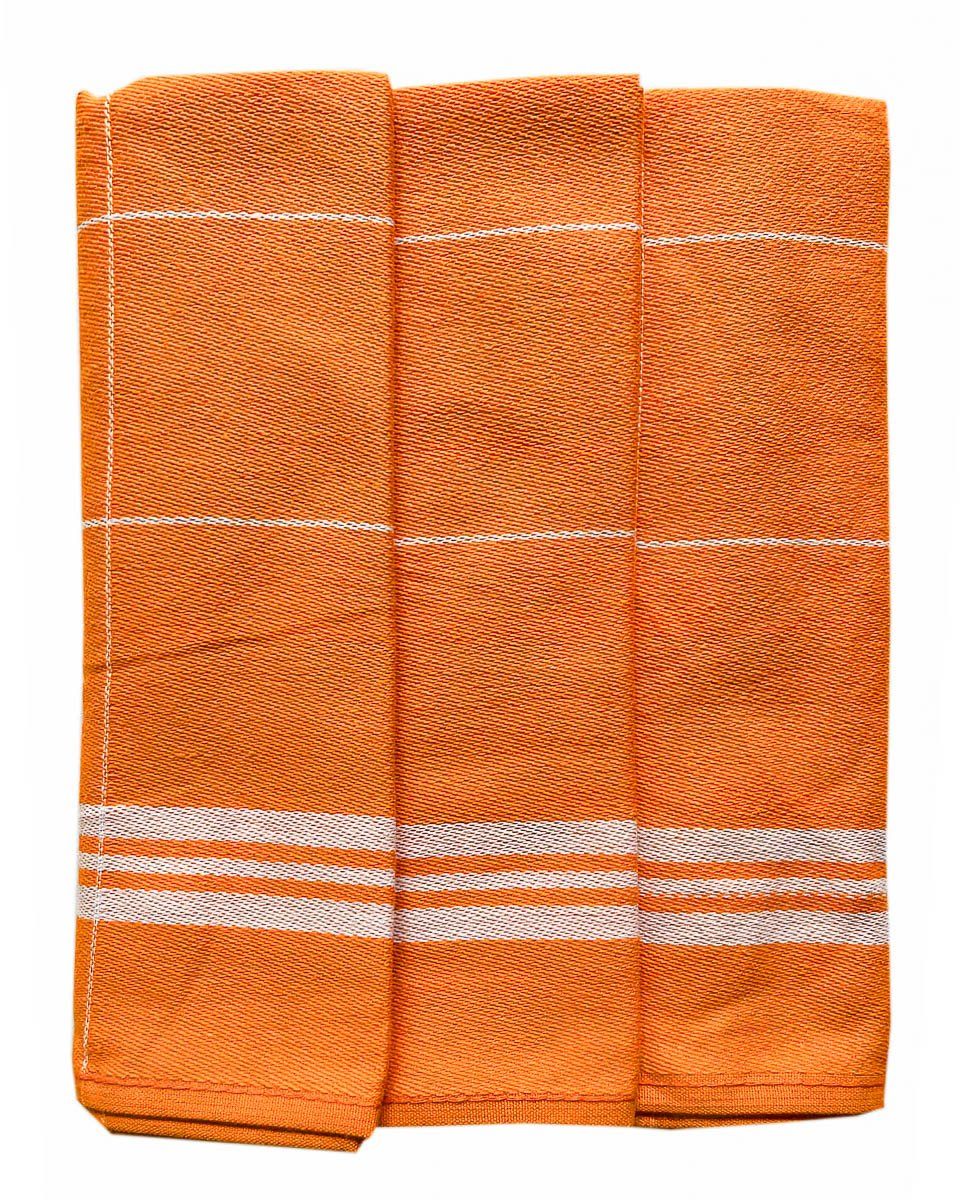 Souprava tří kusů kuchyňských utěrek z exkluzivní egyptské bavlny v rozměru 50x70cm se vzorem proužků v oranžovém provedení.