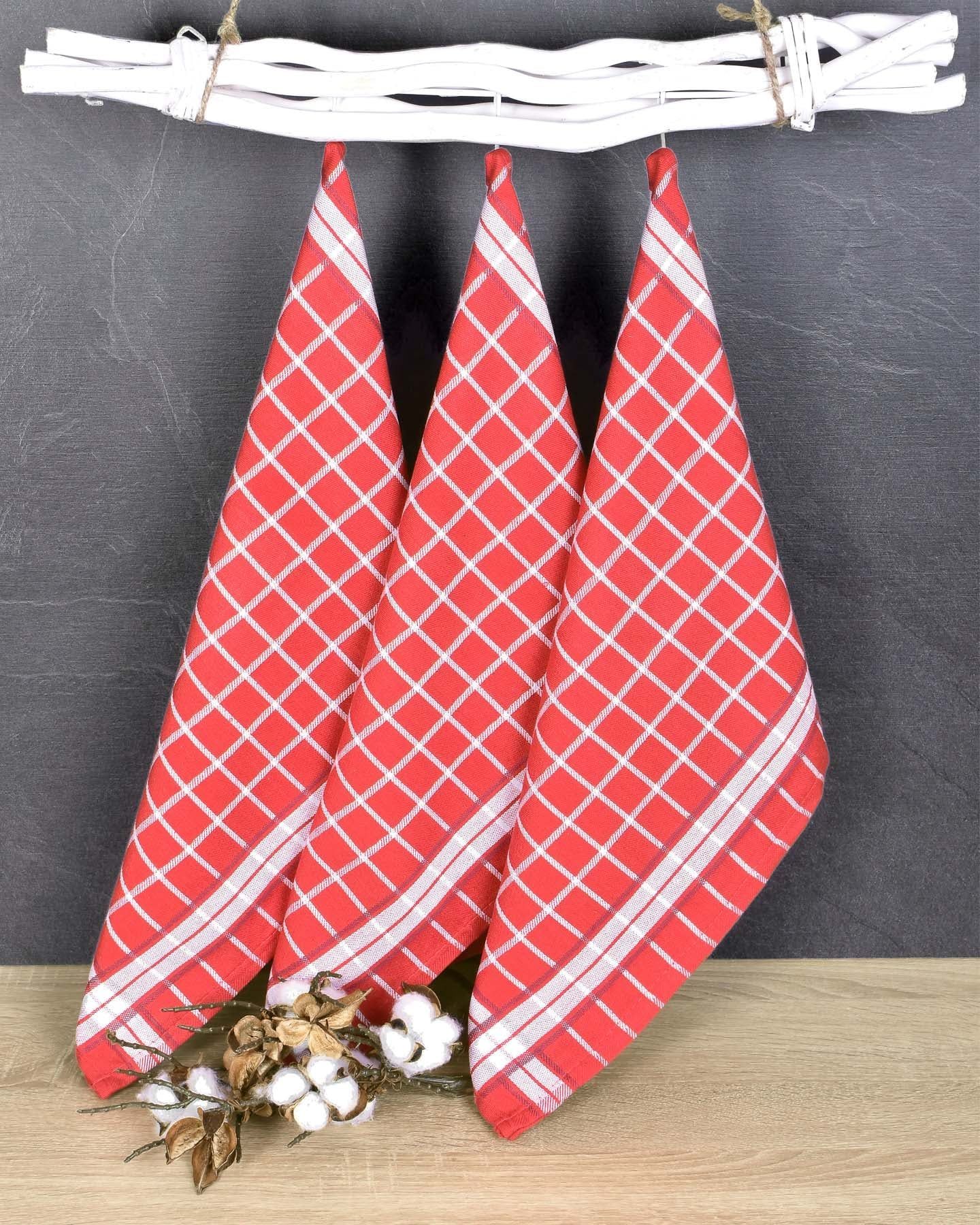 Souprava tří kusů kuchyňských utěrek z exkluzivní egyptské bavlny v rozměru 50x70cm se vzorem červeno-bílé kostky. Utěrk...