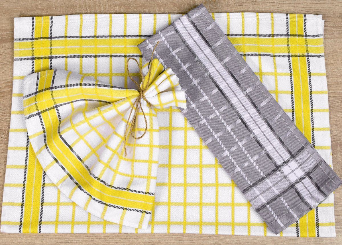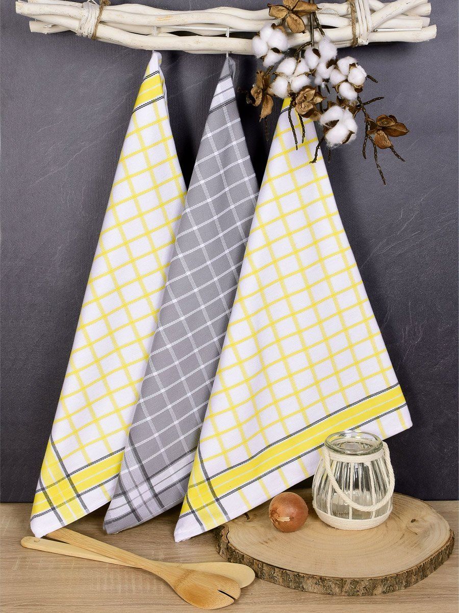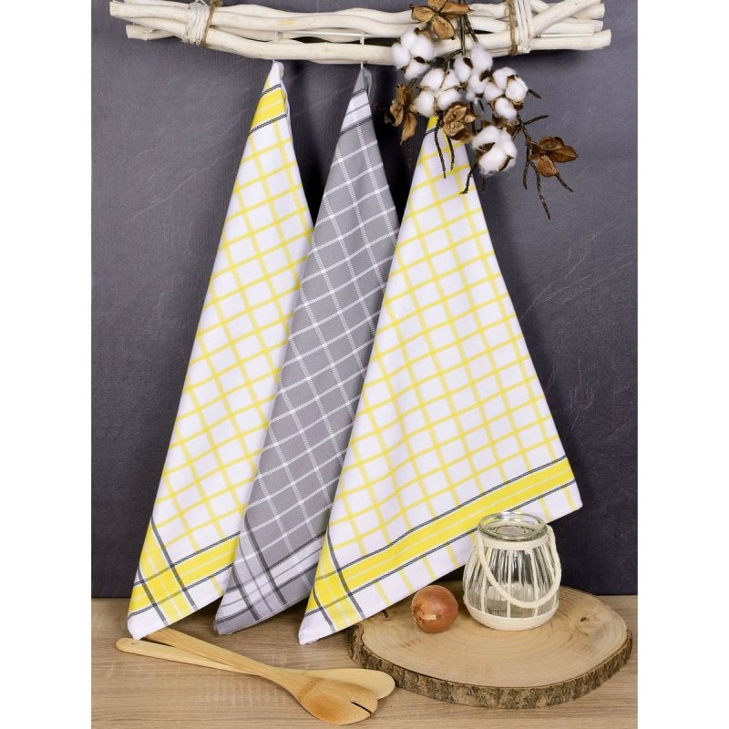 Kuchyňské utěrky EGYPTSKÁ BAVLNA FEMI, žluto-šedá kostka, 3 kusy, 50x70cm