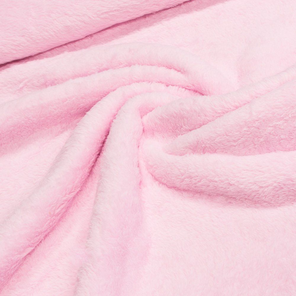 Mikroplyš (coral fleece) v jednobarevné světle růžové barvě. Látka je v šířce 160 cm a je vyrobena ze 100% mikropolyeste...