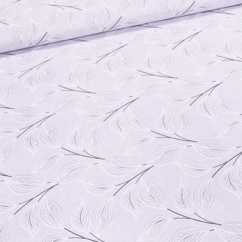 Směsová látka (tkanina) se vzorem listů na světle šedém podkladu. Látka je v šířce 140 cm a je vyrobena z 55% bavlny a 45% polyesteru. Motiv na látce je pouze z jedné strany, z druhé je látka bez potisku.