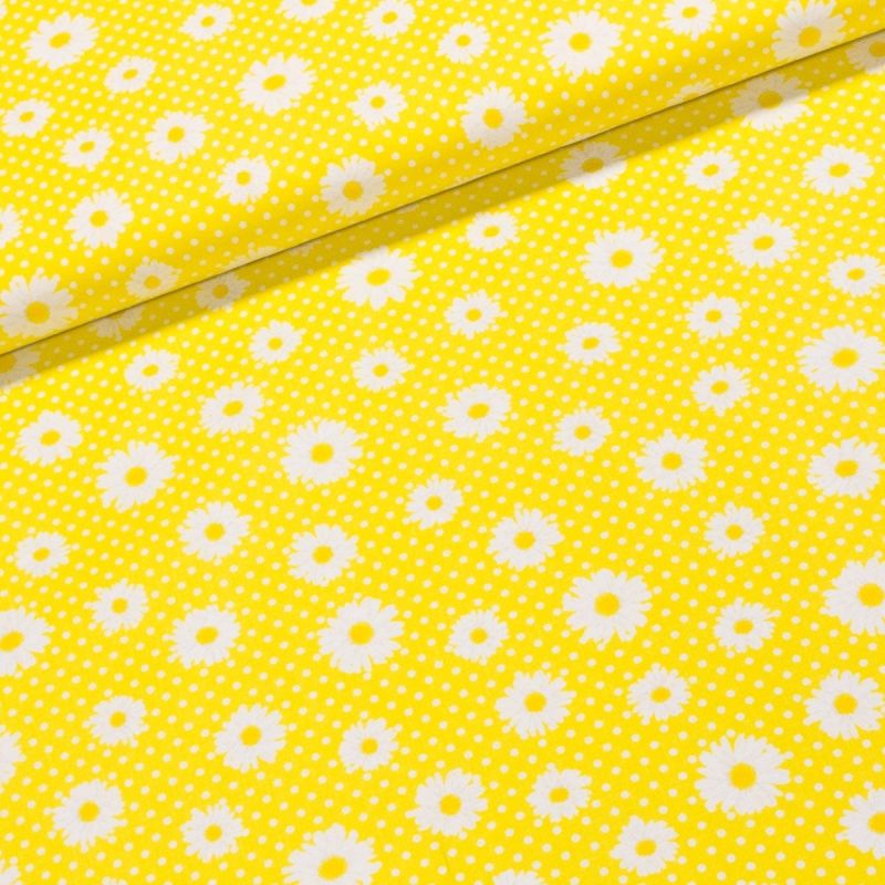 Bavlněné plátno MATY 1620306/02 kopretiny a tečky na žluté, š.140cm (látka v metráži)