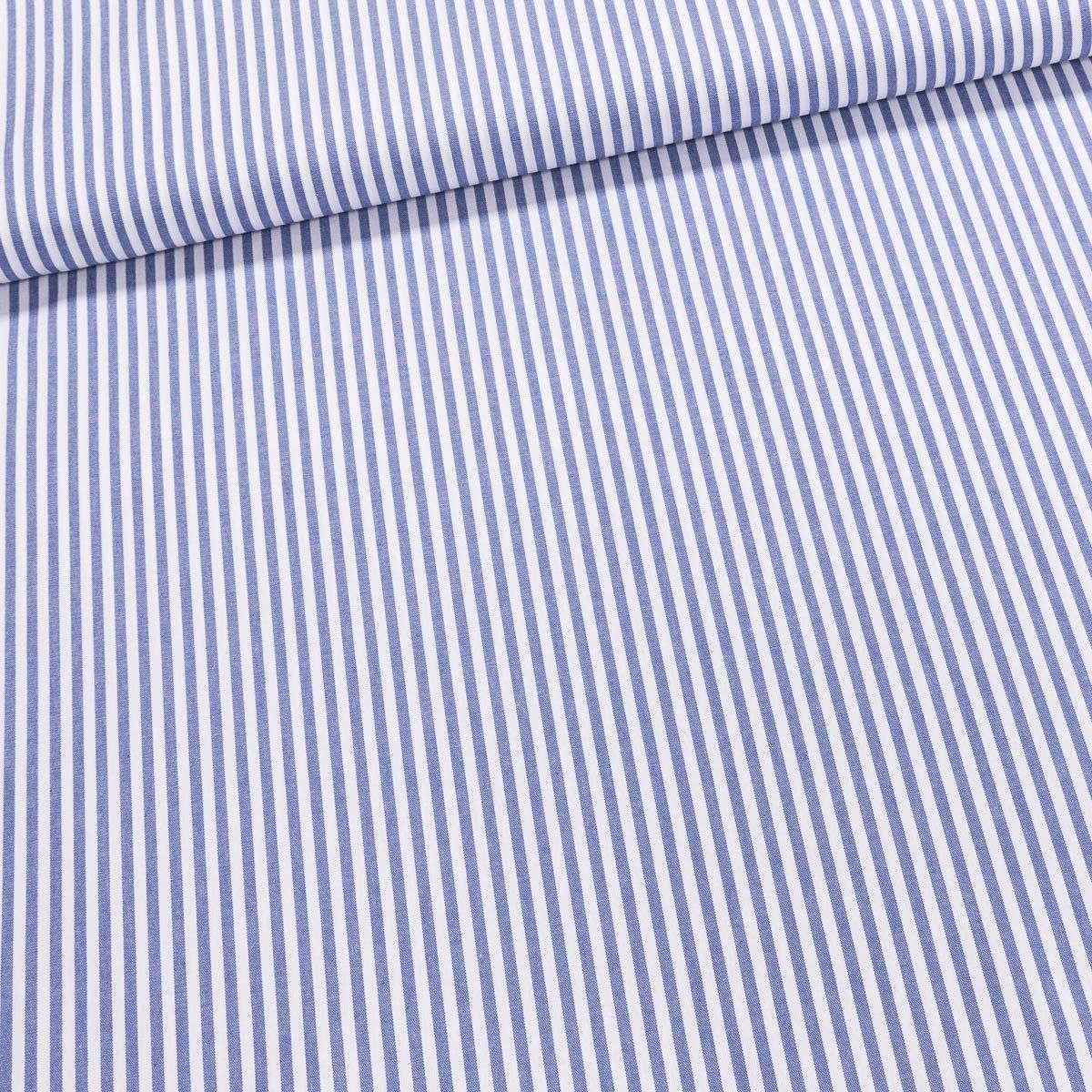 Pravý český bavlněný kanafas JIŘINA P0, 5 02352 proužek 0,5cm, riflově modrý, š.140cm (látka v metráži)