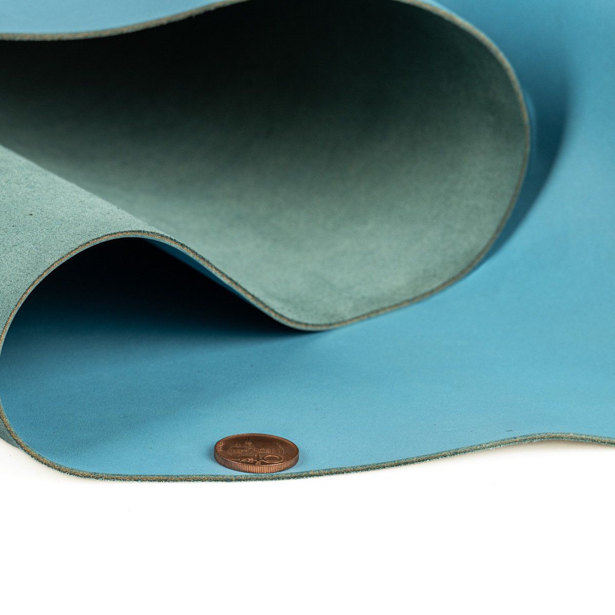 Pravá přírodní hovězí kůže / hovězina SKINITO světle modrá, tloušťka 1,4 - 1,6 mm, ve střihu po A4