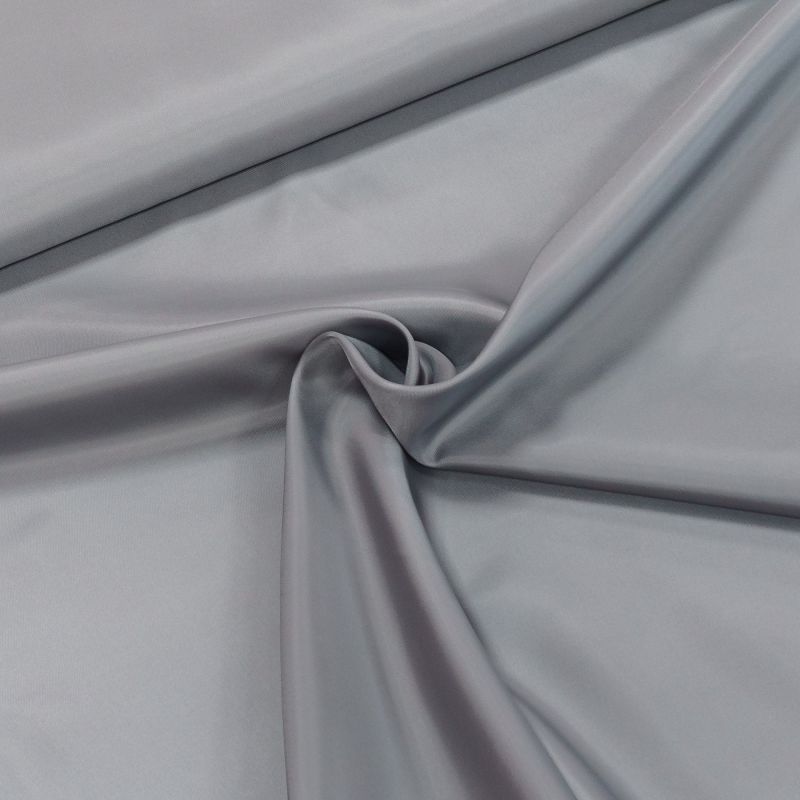 Polyesterová podšívka v jednobarevné šedé barvě. Látka je v šířce 150 cm, vyrobena ze 100% polyesteru (gramáž 108g/m2) v hladkém provedení. Látka je z obou stran stejná.