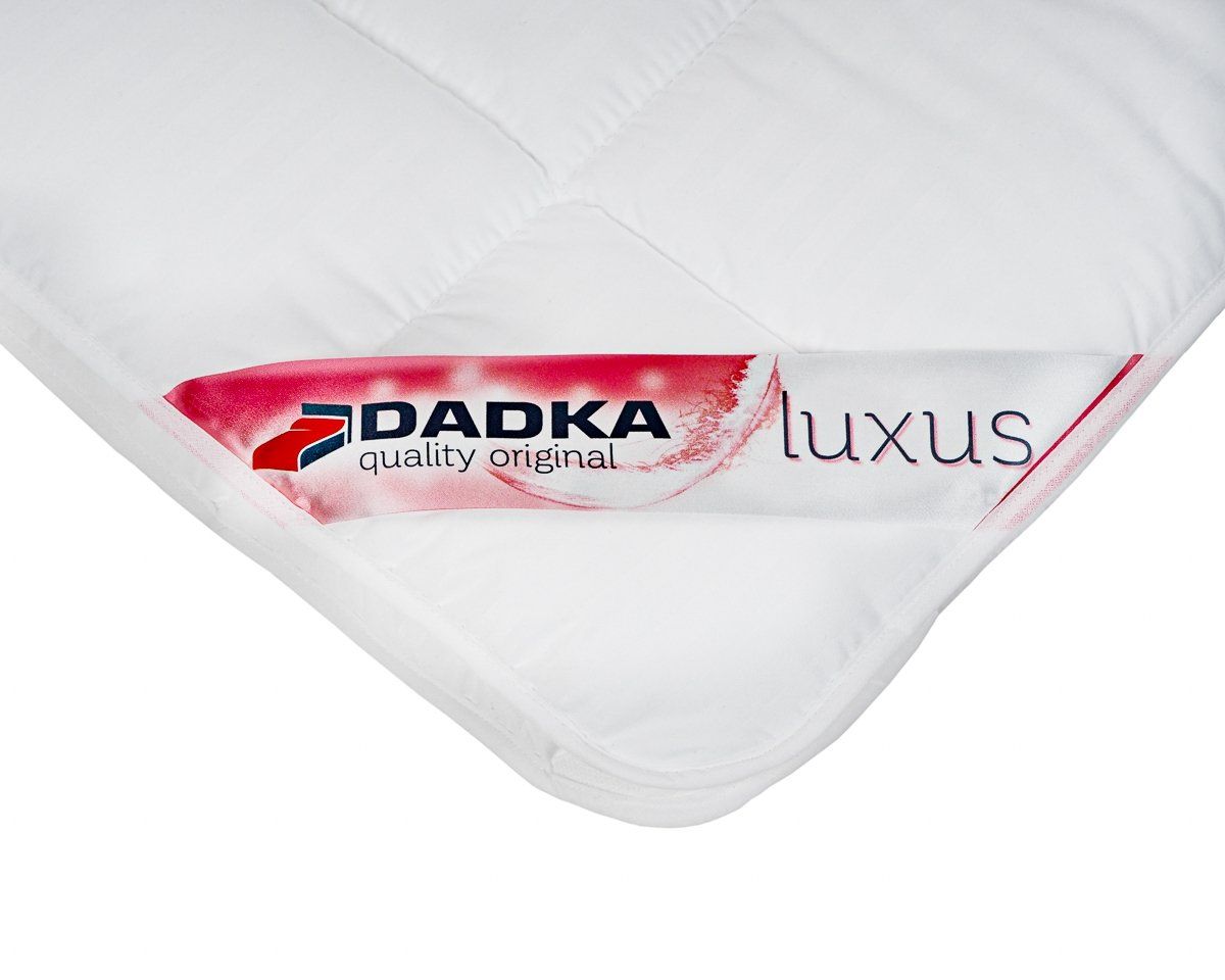 Letní prošívaná francouzská přikrývka od českého výrobce Dadka s povlakem z mikrovlákna a náplní z dutého vlákna z vyšší řady LUXUS. Odlehčená letní varianta má menší množství výplně, a je tak vhodná zejména na jaro a léto. Přikrývky z této kolekce se vyznačují vysokou kvalitou a jsou vhodné nejen pro alergiky a astmatiky. Přikrývky nabízejí precizní zpracování, velmi příjemný a hebký materiál i kvalitu ušití. Pevné švy a dlouhá životnost jsou u těchto přikrývek samozřejmostí. Povlak přikrývky je hladký bez vzoru. Náplň je tvořena ze tří vrstev značkového dutého vlákna DuPont, které i díky prošití do čtverců dodává přikrývce vzdušnost, lehkost a prodyšnost. Přikrývka je dostupná ve více rozměrech. Hmotnost každého rozměru je uvedena v popisu. POZOR: nelze zaslat Zásilkovnou nebo do Balíkovny. Možné dodání pouze přes GLS nebo Českou poštou - Balík do ruky!!!Letní prošívané přikrývky z řady LUXUS SUPRA od českého výrobce Dadka se vyznačují vynikající kvalitou. Přikrývky nabízejí vysoce kvalitní zpracování, příjemný materiál i kvalitu ušití. Povlak s decentním vzorem proužků tvoří 100% polyesterové mikrovlákno, nápľn potom značkové polyesterové rouno z dutého vlákna ve třech vrstvách. Díky tomu jsou vhodné pro alergiky a astmatiky. Přikrývky mají pevné švy a díky celkově perfektní kvalitě zpracování mají dlouhou životnost. Přikrývku je možné prát na 40°C. Výrobky jsou opatřeny zdravotním atestem TZÚ Brno a značkou „QZ – Zaručená kvalita”. Přikrývky jsou dodávány v praktické tašce pro snadné přenášení či uskladnění.