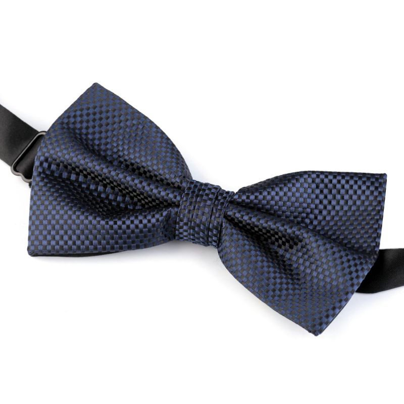 Elegantní pánský motýlek modré barvy s kostičkovaným vzorem a jemným leskem, vyrobený ze 100% polyesteru. Ze zadní strany je motýlek hladký v černé barvě, díky čemuž je pevně vyztužený. Motýlek je již uvázaný, pouze utáhnete saténový pásek s kovovým zapínáním kolem krku (nejdelší délka okolo krku je 50cm). Motýlek má v nejširším místě 12 cm a je vysoký 6,5 cm v nejdelším místě. Díky své univerzální barvě a vzoru je tento motýlek vhodný jak na společenské události, tak do kanceláře nebo na formální jednání. Balený je v dárkové krabičce.