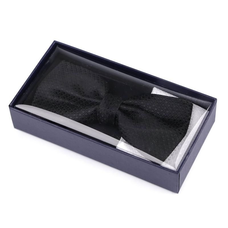 Motýlek pánský s kapesníčkem 870587/5 vzorovaný, černo-bílý / kostičky