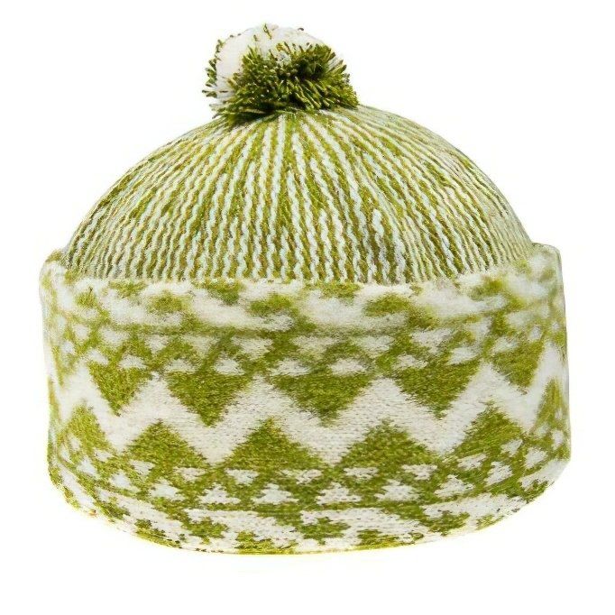 Pánská vlněná čepice od tradičního českého výroce TONAK s klasickým vlnitým vzorem, tzv. zmijovka ve žlutozelené-smetano...