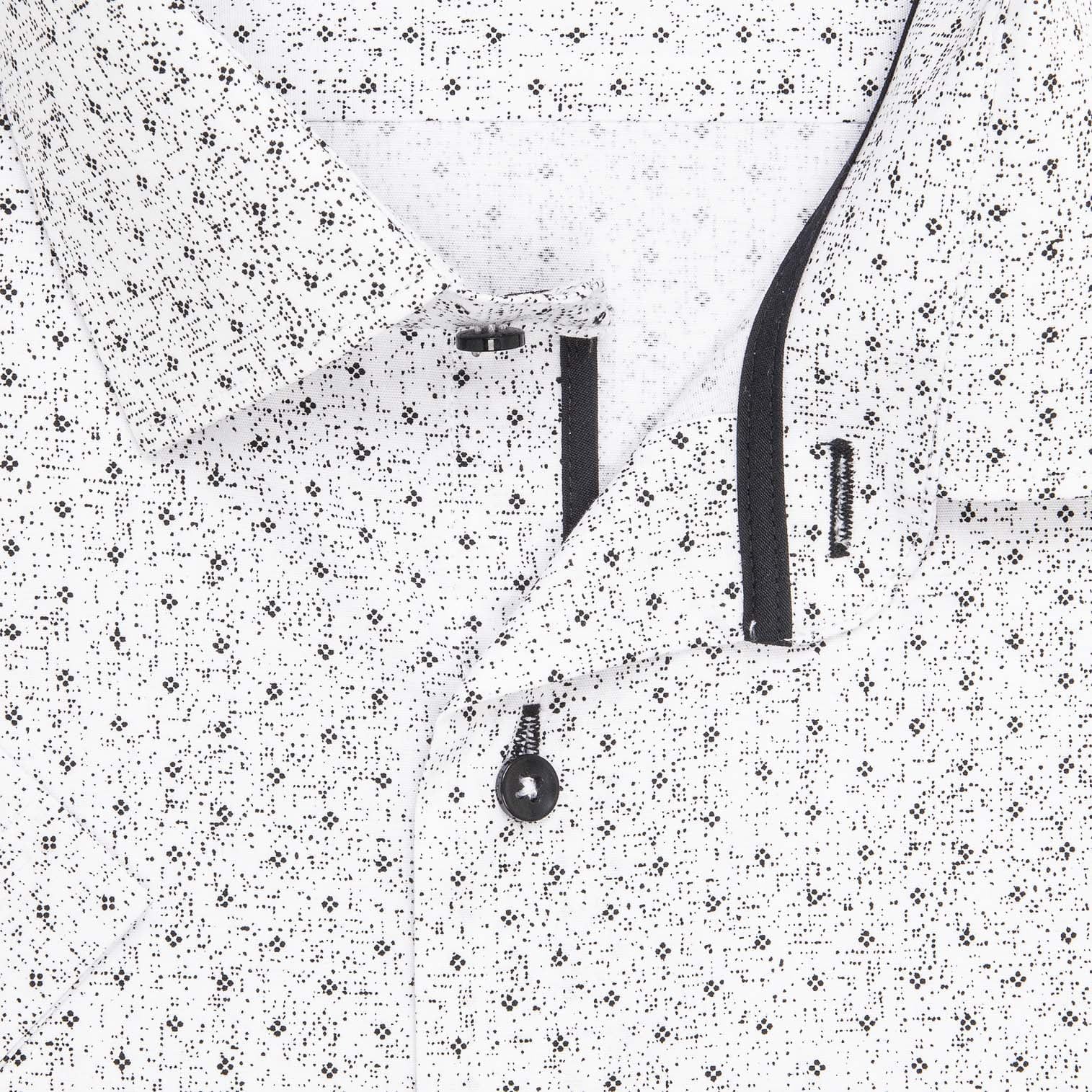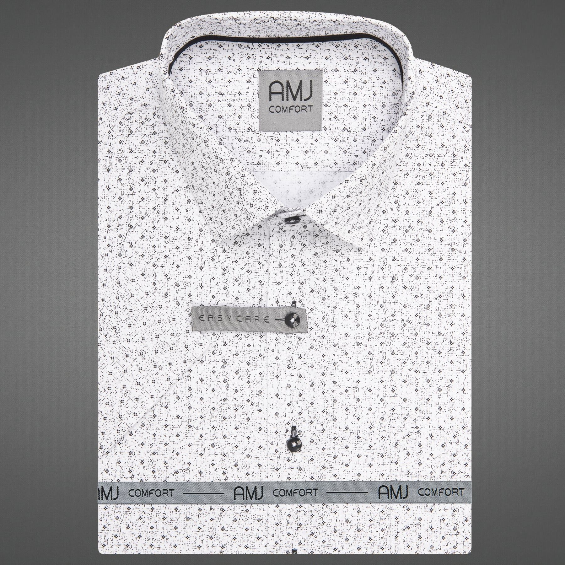 Pánská vzorovaná košile AMJ Comfort s krátkým rukávem. Pánská košile je v bílé barvě se vzorem černého kropení s černými...