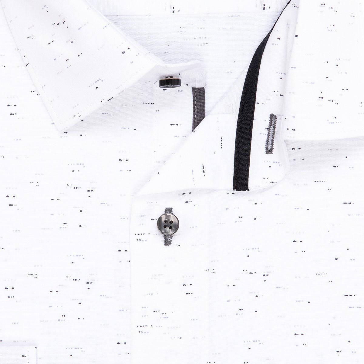 Pánská vzorovaná košile AMJ Comfort s dlouhým rukávem. Pánská košile v bílé barvě se vzorem černých a šedých teček tvoří...