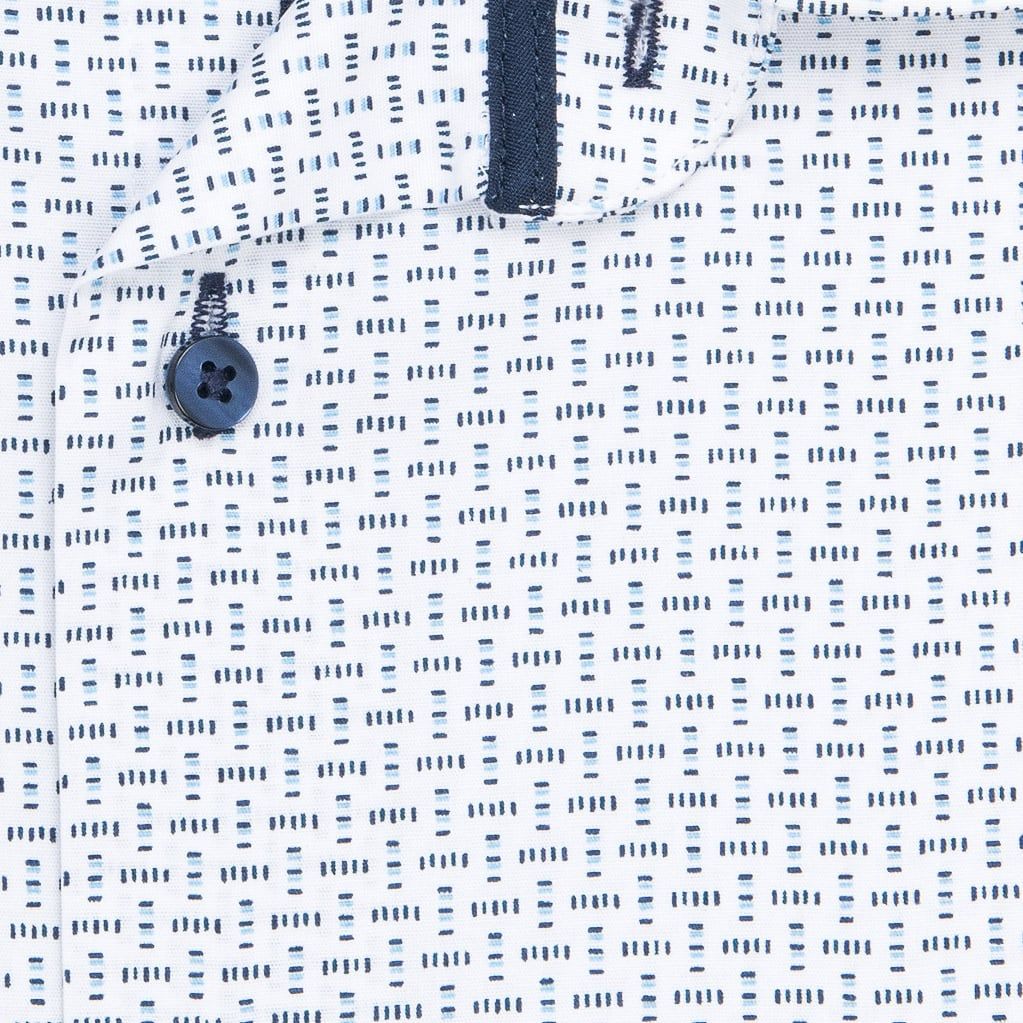 Pánská vzorovaná košile AMJ Comfort s krátkým rukávem. Pánská košile je v bílé barvě se vzorem modrých čárek s modrými d...
