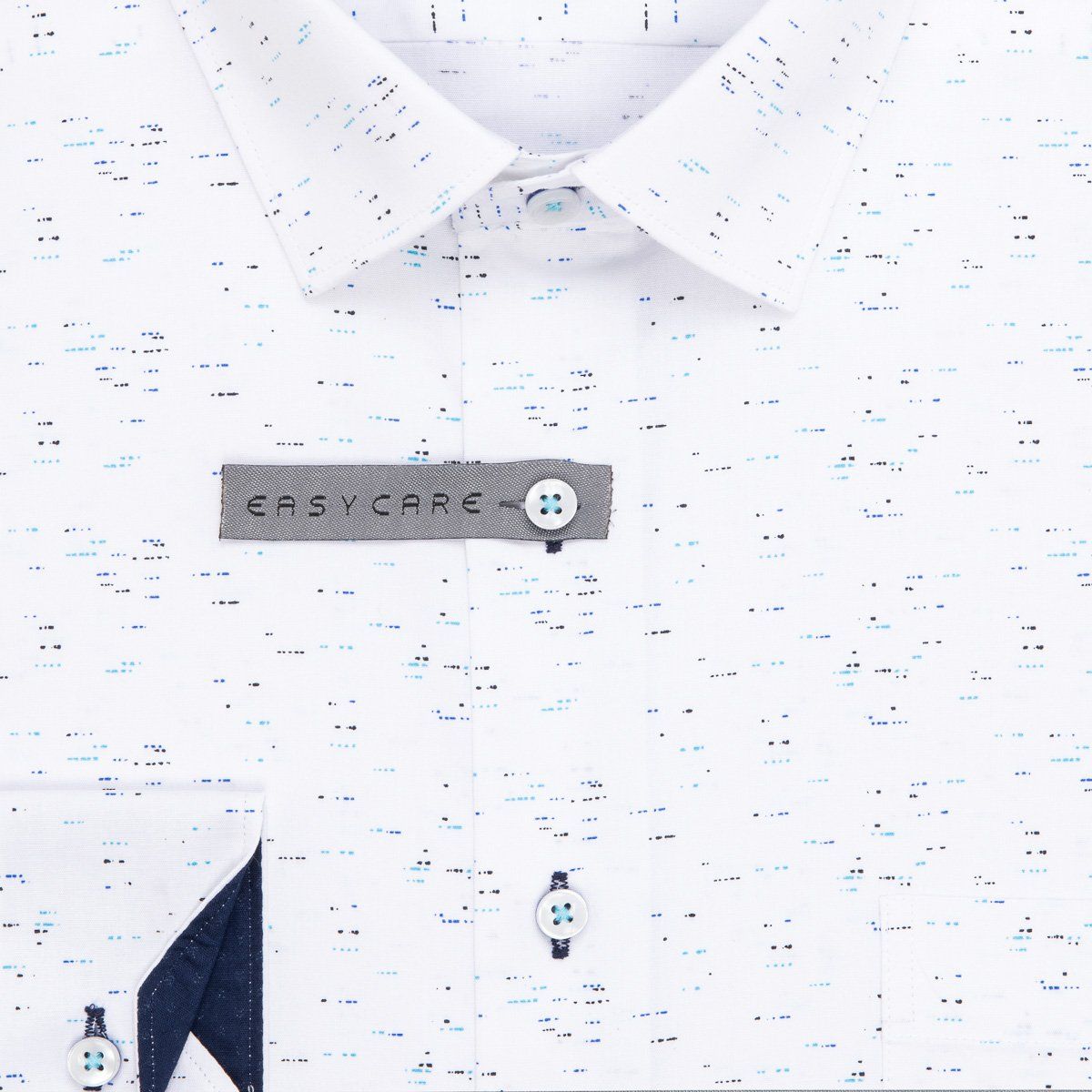 Pánská vzorovaná košile AMJ Comfort s dlouhým rukávem. Pánská košile v bílé barvě se vzorem tmavě a světle modrých puntí...