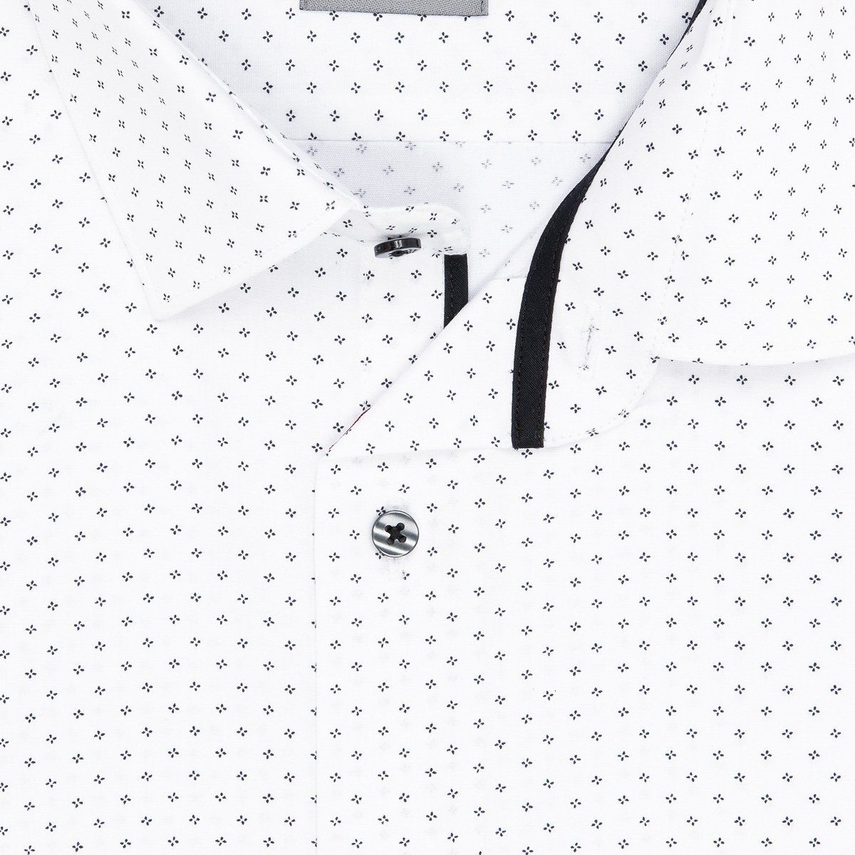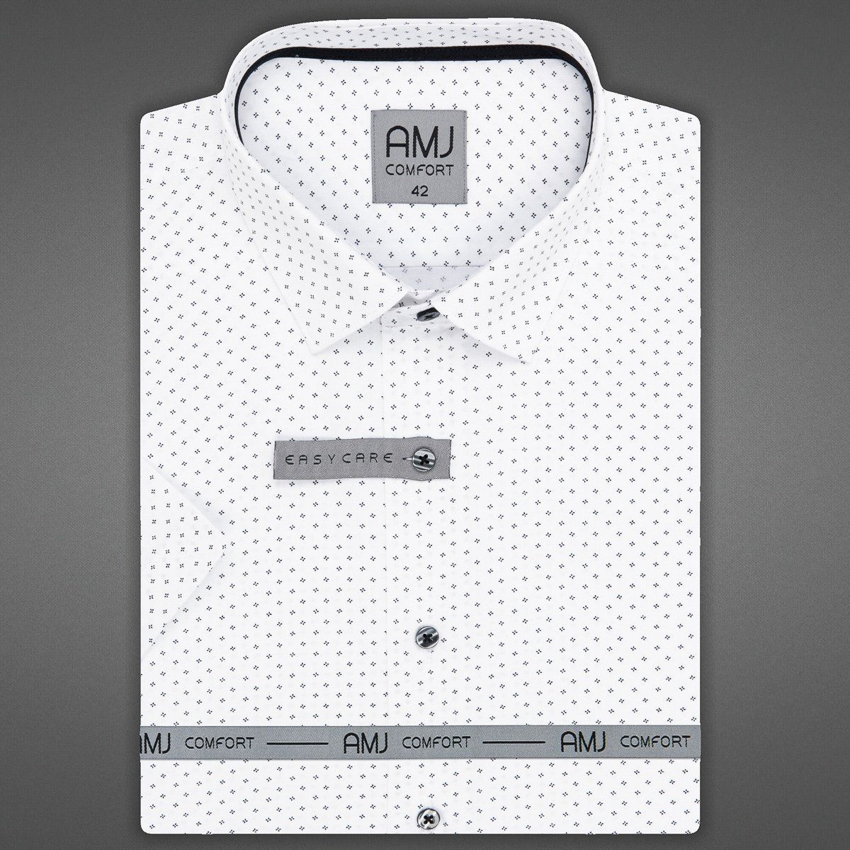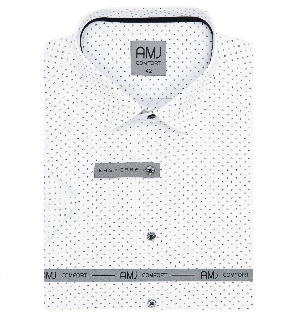 Pánská vzorovaná košile AMJ Comfort s krátkým rukávem. Pánská košile je v bílé barvě se vzorem drobných černých puntíků ...