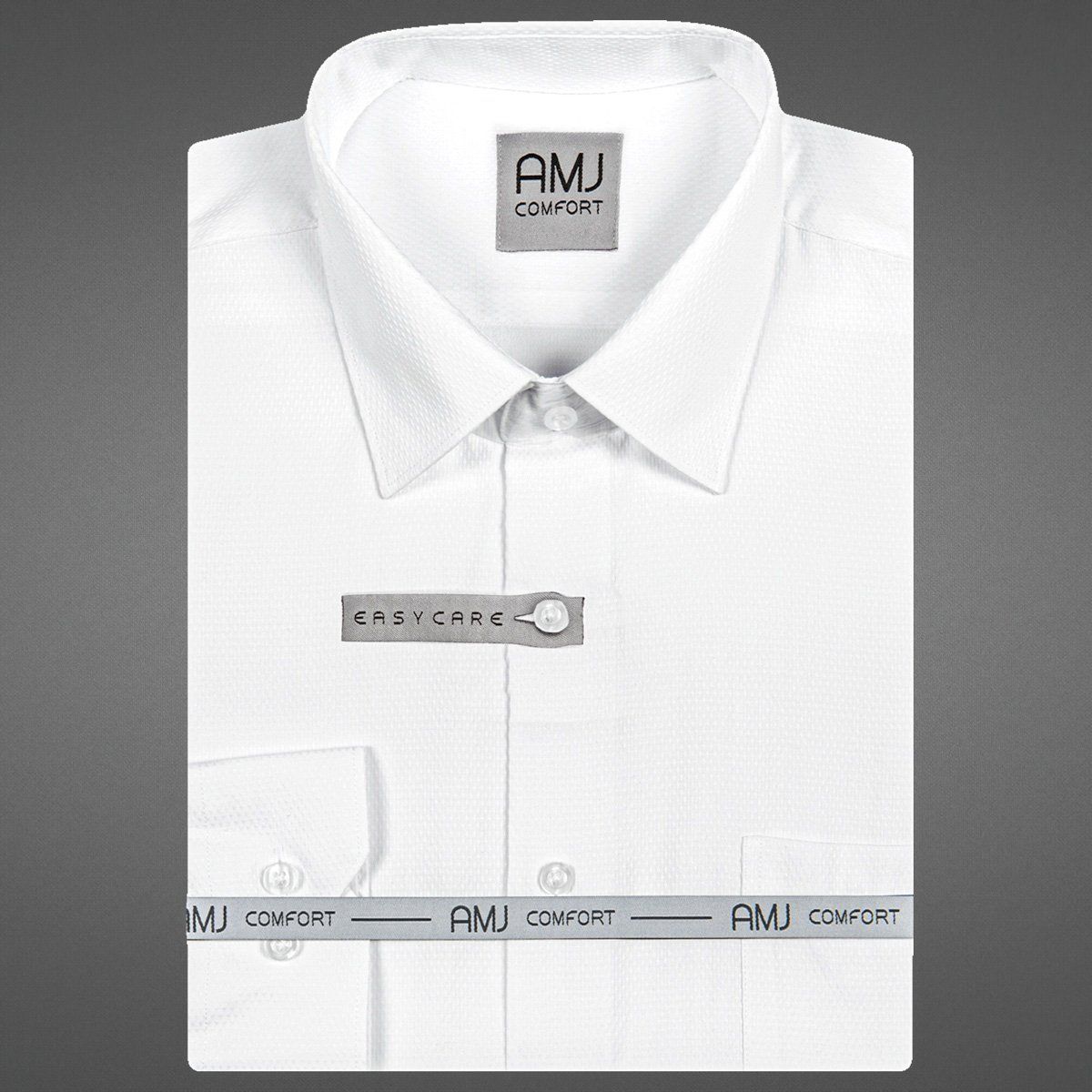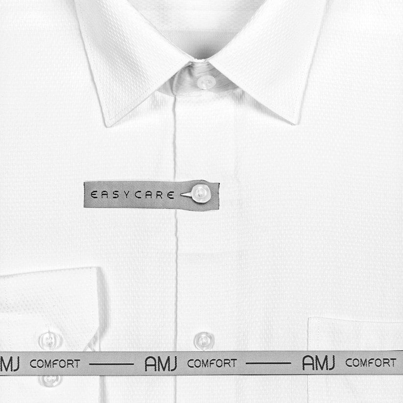 Pánská vzorovaná košile AMJ Comfort s krátkým rukávem. Pánská košile v bílé barvě s jemným vytkávaným vzorem. Košile se hodí jak do zaměstnání, tak na běžné nošení i do společnosti. V této košili Vám bude velmi příjemně díky použití kvalitního materiálu (100% bavlny).