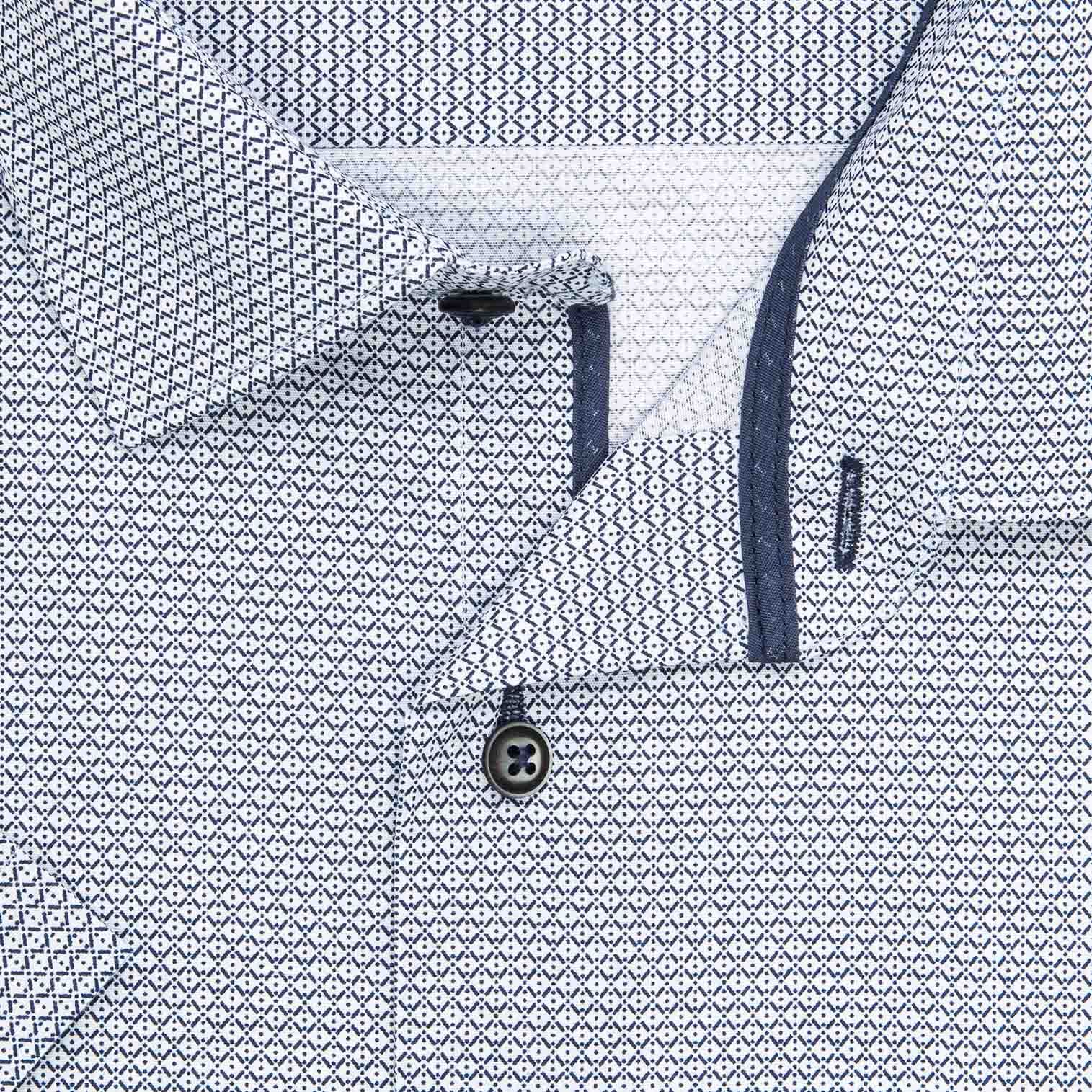 Módní pánská vzorovaná košile s krátkým rukávem a tištěným vzorem. Košile je vhodná jak do obleku s kravatou, tak pro běžné nošení. Díky použití kvalitního materiálu (95% bavlny 5% spandex) Vám bude v košili velmi příjemně. Nová moderní úprava „EASY CARE“ zajistí, že se košile méně krčí a její žehlení je o hodně snadnější. Košili je možné prát na 40°C běžným pracím programem (není vhodné sušení v sušičce). Košile je již vysrážená, při dodržení pokynů k praní se nesrazí. Budete-li prát na nízké otáčky, práci s žehlením si u této košile můžete skoro odpustit.