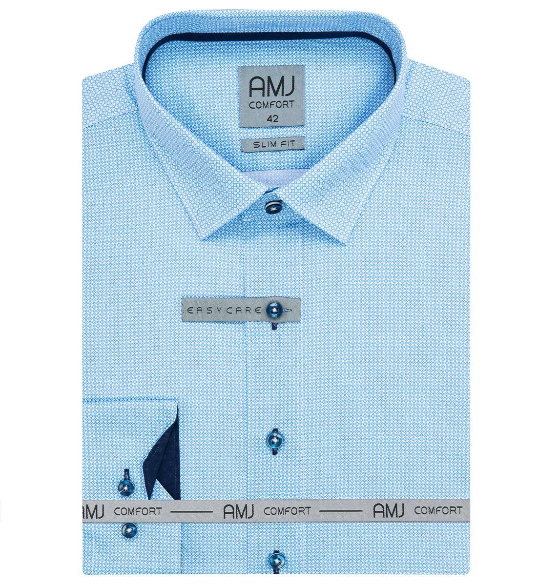 Pánská košile AMJ bavlněná, modrá vzorovaná, VDBR1321, dlouhý rukáv (regular + slim-fit + prodloužený slim-fit)