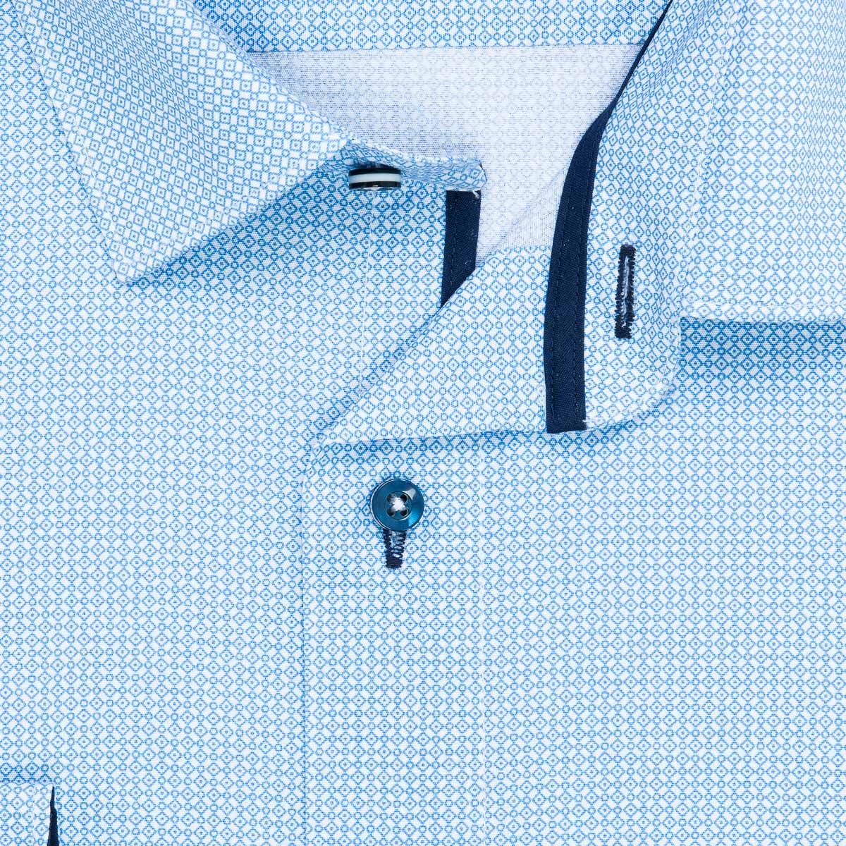 Módní pánská vzorovaná košile s dlouhým rukávem a tištěným vzorem. Košile je vhodná jak do obleku s kravatou, tak pro běžné nošení. Díky použití kvalitního materiálu (100% bavlna) Vám bude v košili velmi příjemně. Díky nové moderní úpravě „EASY CARE“ se košile méně krčí a její žehlení je o hodně snadnější. Košili je možné prát na 40°C běžným pracím programem (není vhodné sušení v sušičce). Košile je již vysrážená, při dodržení pokynů k praní se nesrazí. Budete-li prát na nízké otáčky, práci s žehlením si u této košile můžete skoro odpustit.