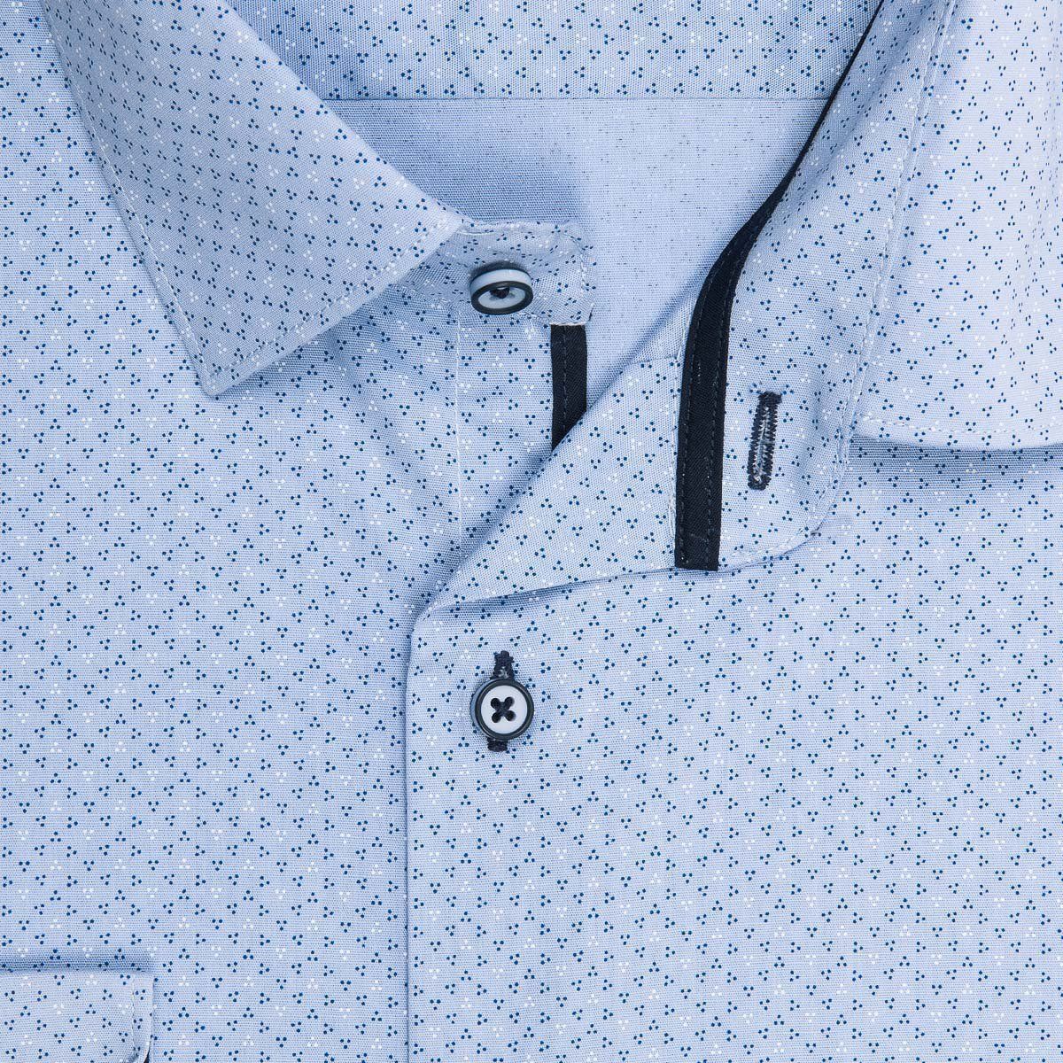 Pánská košile AMJ bavlněná, světle modrá s tečkovanými trojúhelníčky, VDBR1245, dlouhý rukáv (základní + prodloužená délka)
