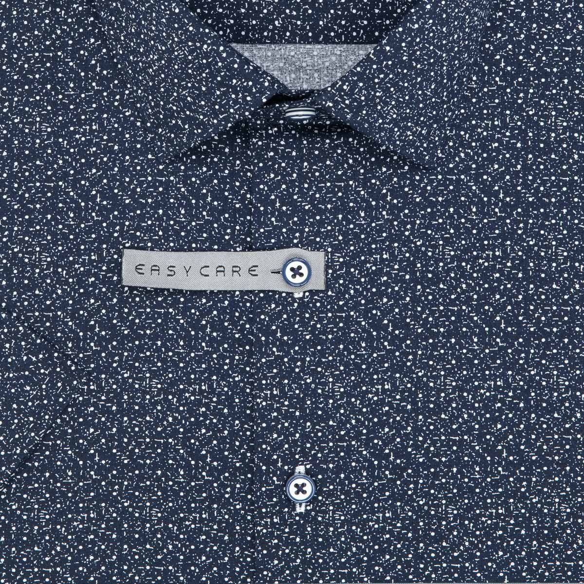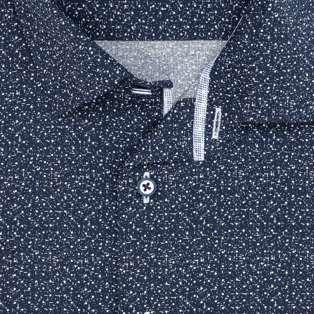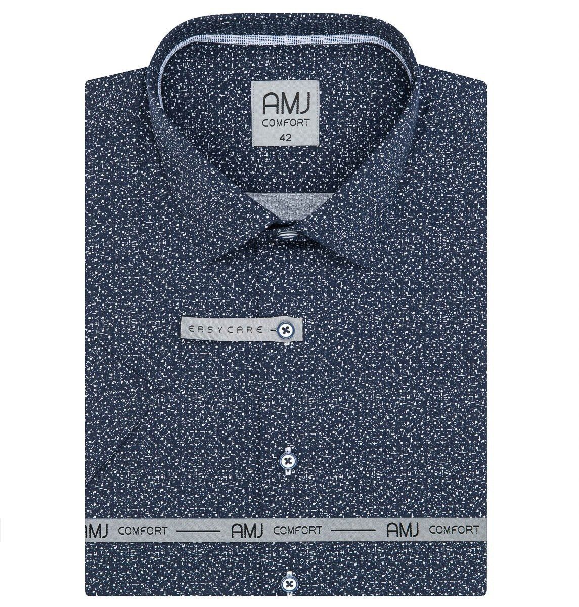 Pánská vzorovaná košile AMJ Comfort s krátkým rukávem. Pánská košile je v tmavě modré barvě se vzorem drobných bílých sk...