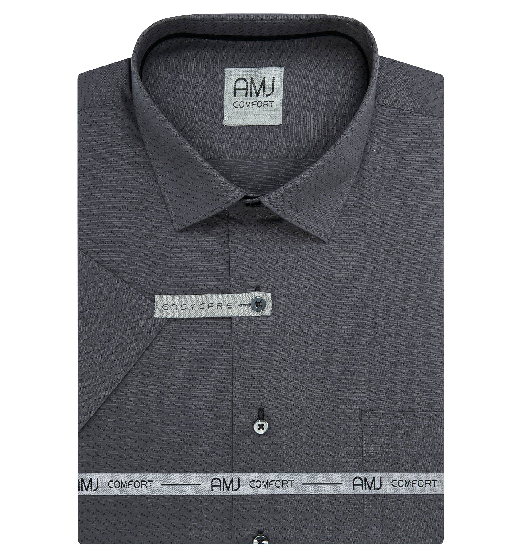 Pánská košile AMJ bavlněná, tmavě šedá s tečkami, VKBR1446, krátký rukáv, (regular + slim fit)