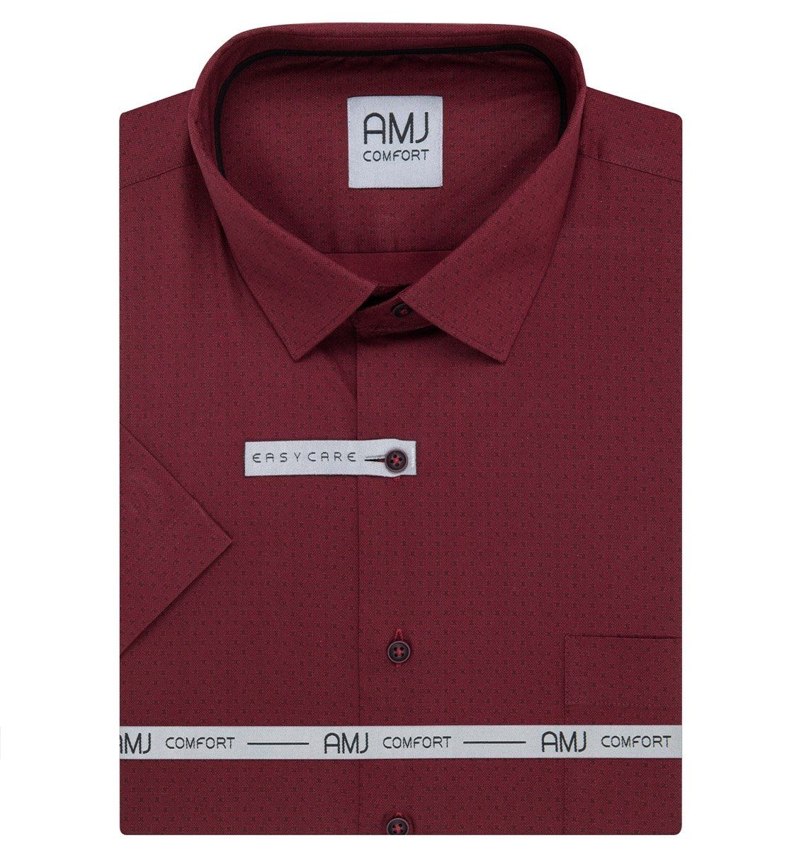Pánská košile AMJ bavlněná, vínová černé puntíky a křížky VKBR1356, krátký rukáv, (regular + slim fit)