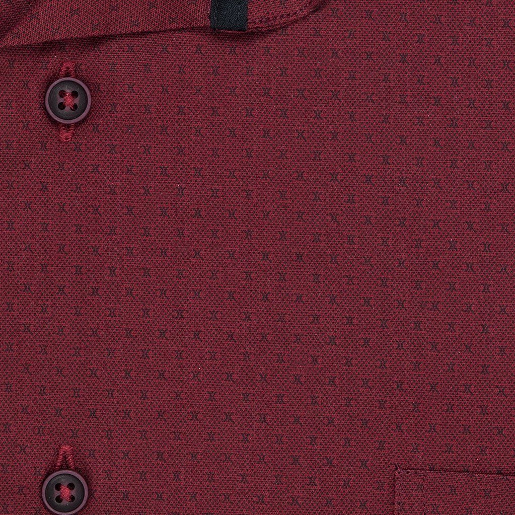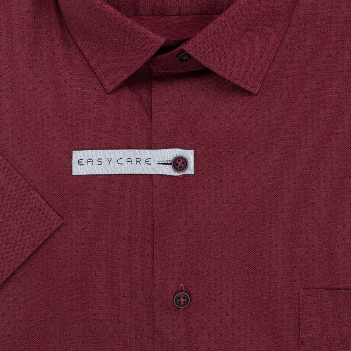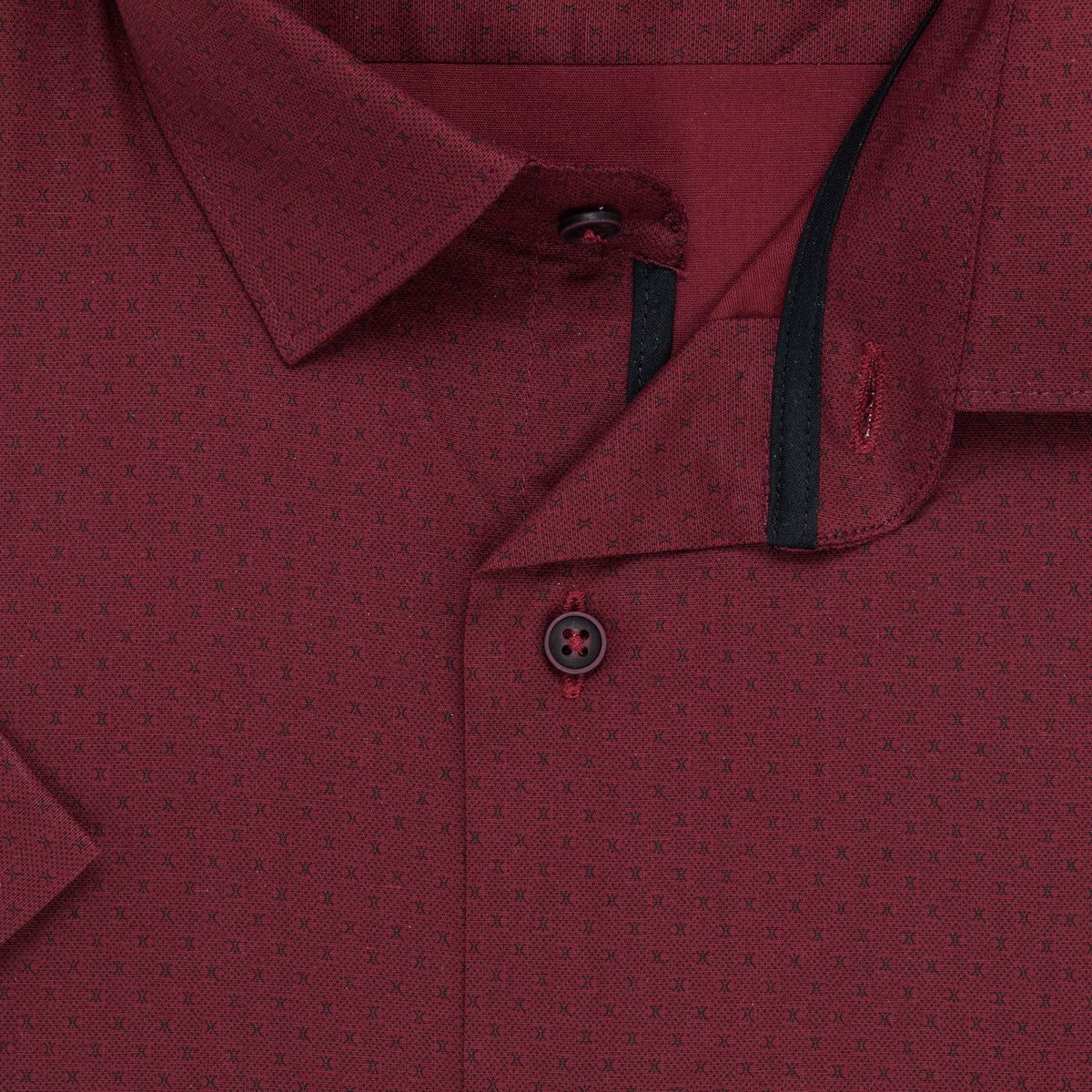 Pánská vzorovaná košile AMJ Comfort s krátkým rukávem. Pánská košile je ve vínové barvě s černými puntíky a křížky a čer...