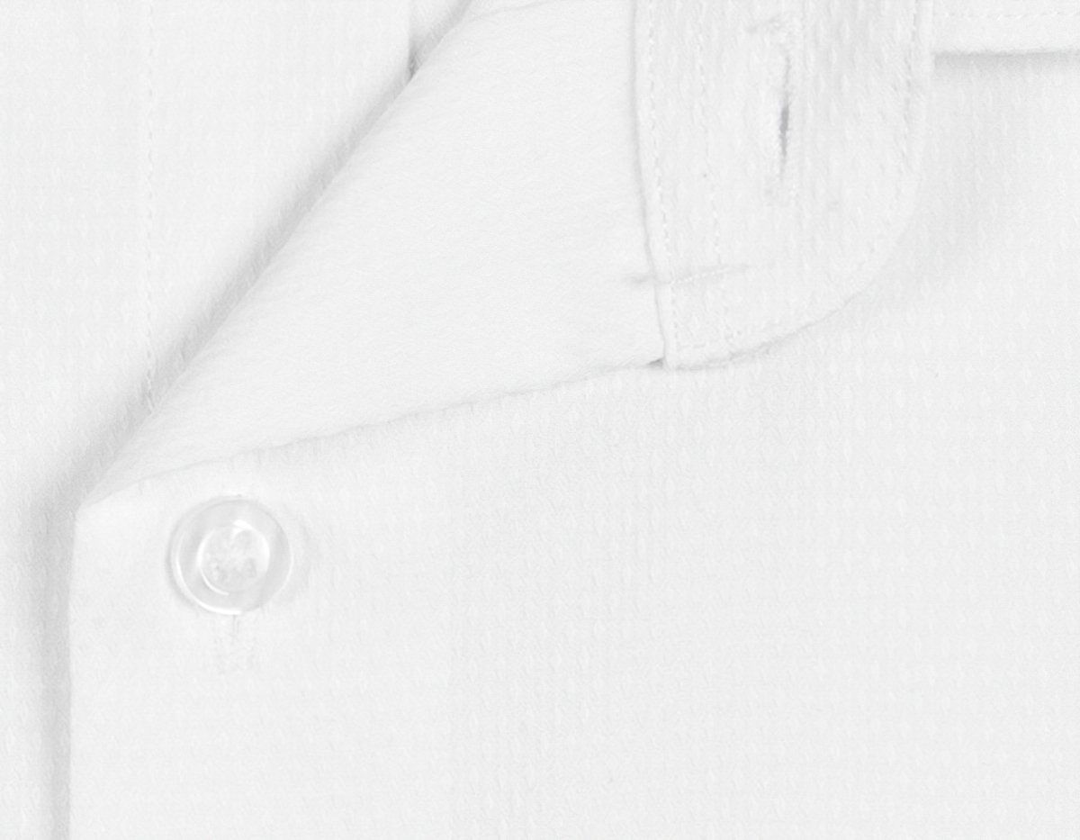Klasická pánská jednobarevná košile s dlouhým rukávem v prodloužené délce (prodloužená délka zad i rukávu), v bílé barvě s vetkávaným vzorem v projmutém (slim - zúženém) střihu. Košile je vhodná jak do obleku s kravatou, tak pro běžné nošení. Díky použití kvalitního materiálu (60% bavlna, 40% polyester) Vám bude v košili velmi příjemně. Díky nové moderní úpravě „EASY CARE“ se košile méně krčí a její žehlení je o hodně snadnější. Košili je možné prát na 40°C běžným pracím programem (není vhodné sušení v sušičce). Košile je již vysrážená, při dodržení pokynů k praní se nesrazí. Budete-li prát na nízké otáčky, práci s žehlením si u této košile můžete skoro odpustit.