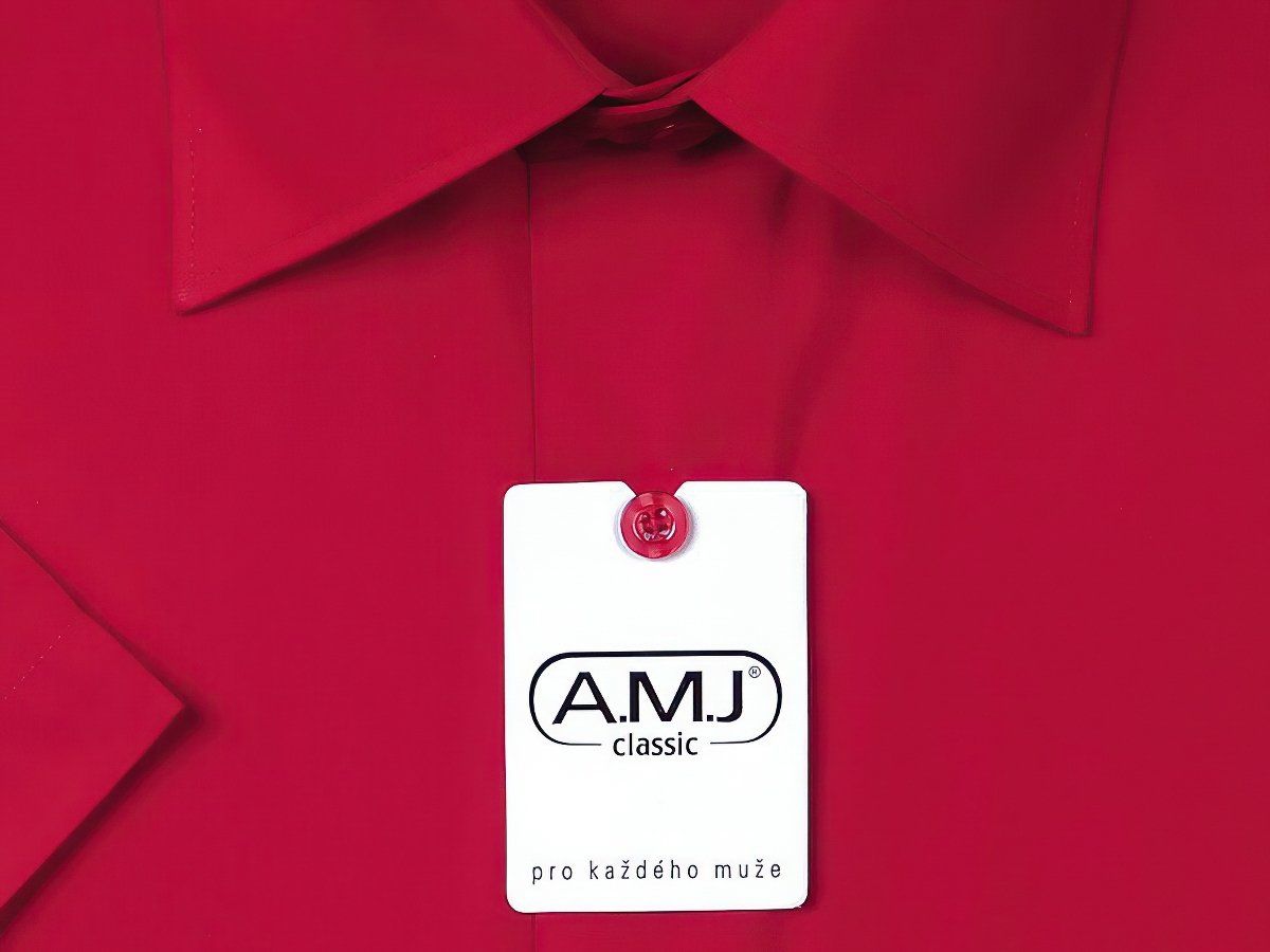 Pánská jednobarevná košile AMJ Classic s krátkým rukávem v červené barvě.