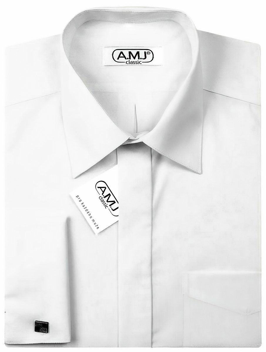 Pánská košile AMJ na manžetové knoflíčky, bílá JDSA018MK, dlouhý rukáv, slim fit