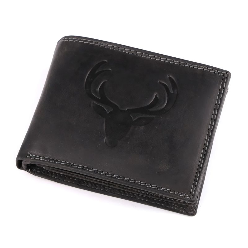 Pánská kožená myslivecká peněženka s RFID ochranou, 870349/21, černá - jelen, matná, 9,5 x 15 x 3,5 cm