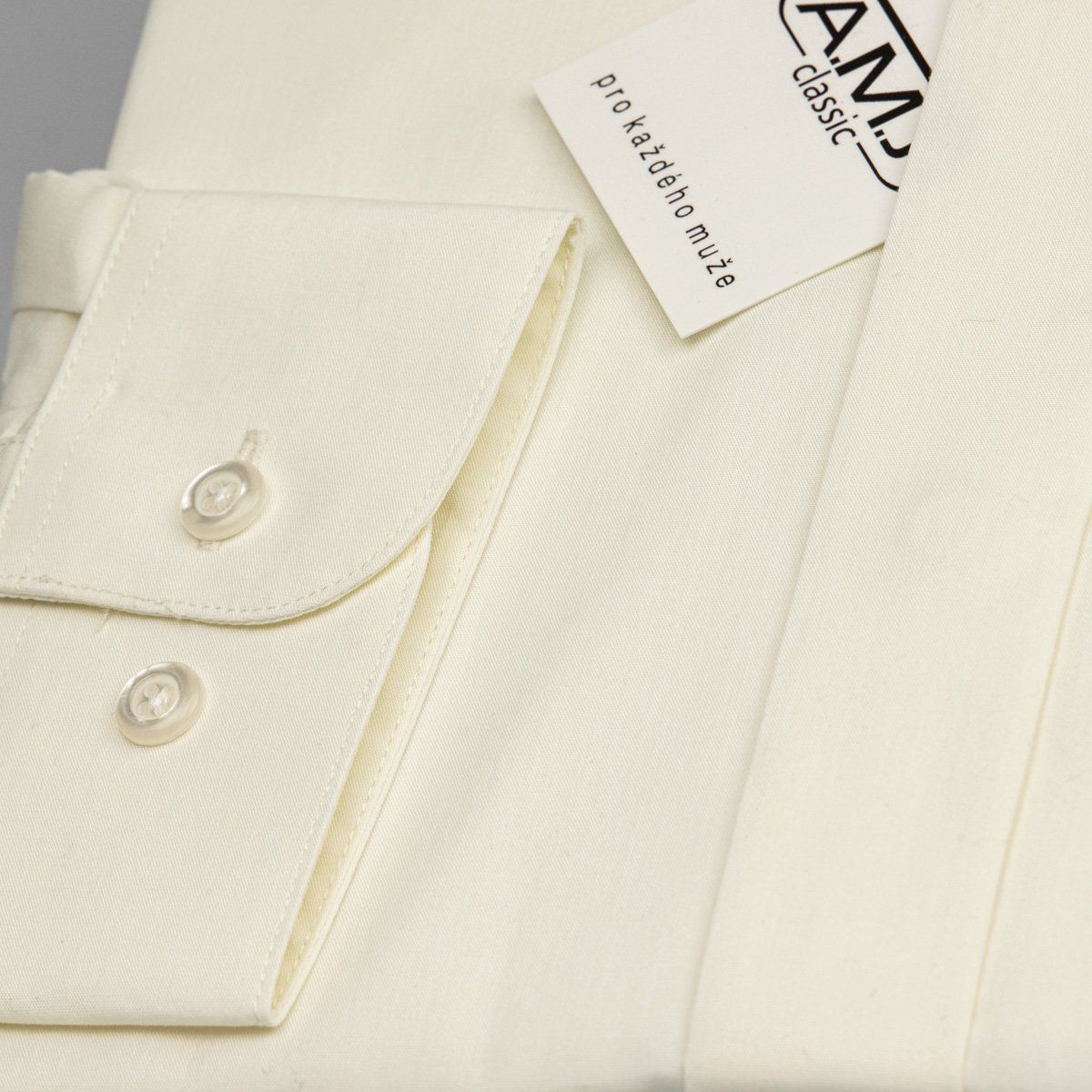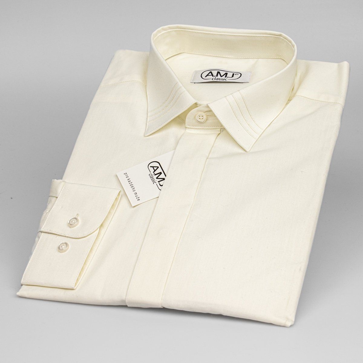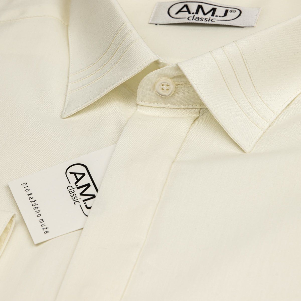 Pánská luxusní košile AMJ smetanová JDA016SKL, dlouhý rukáv, zdobený límec